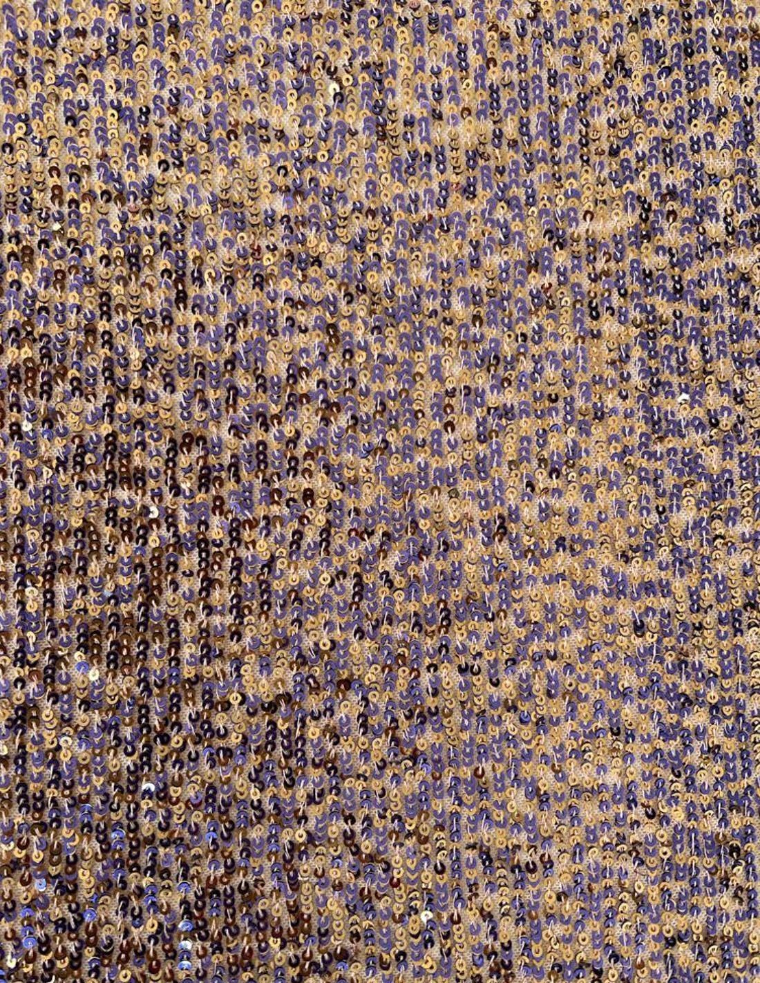 Espectacular diseño de alta costura para invitadas especiales. Este vestido de bodas de tarde está realizado en un delicado tejido de lentejuelas en tonos morados, incorpora un escote tipo halter y le acompañan al hombro unas tiras de pedrería que hacen de este modelo un look elegante y sofisticado.