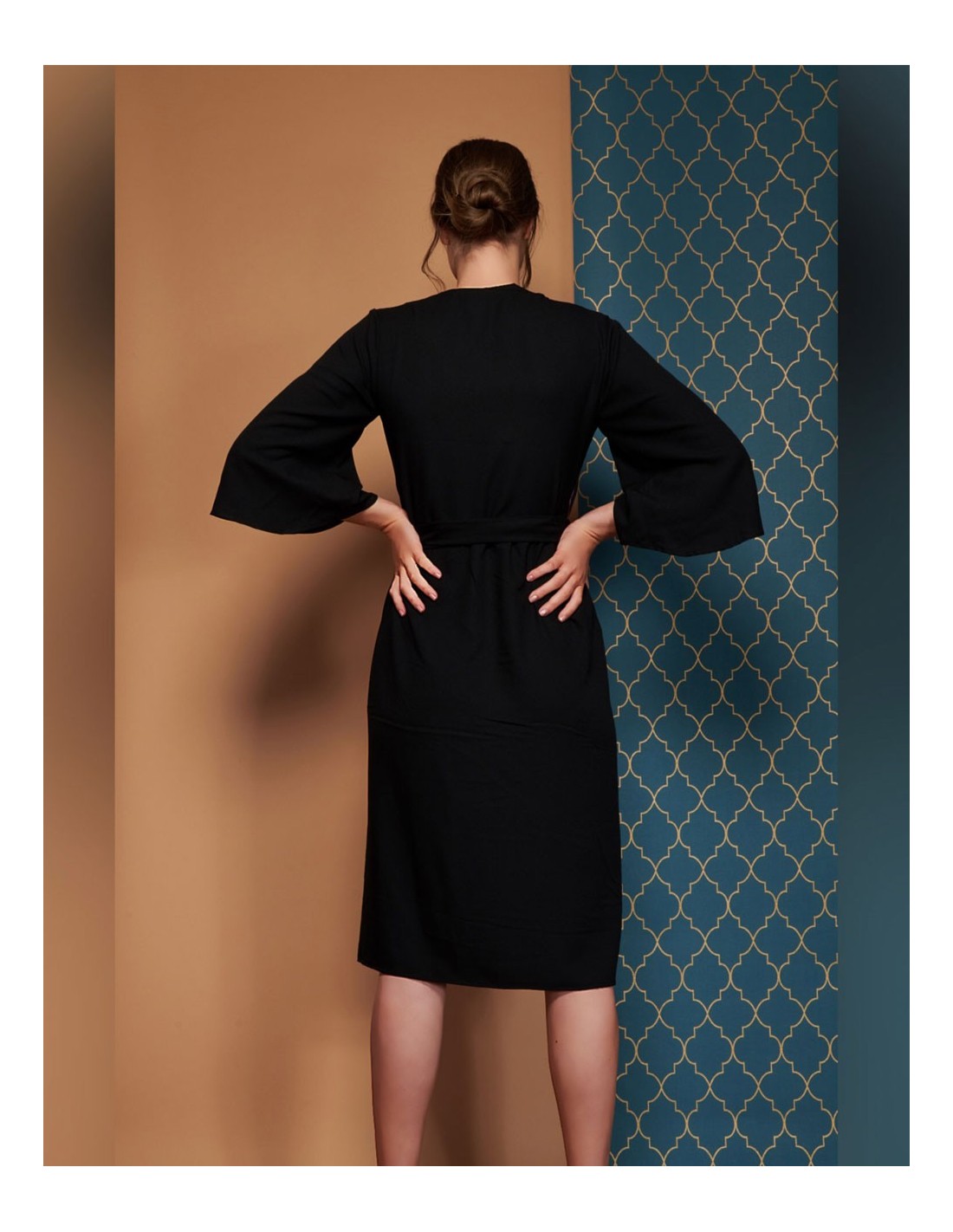 Este vestido midi es perfecto para eventos como bodas y bautizos. Perfecto para salir por la noche con tacones y un clutch elegante. Este precioso vestido midi tiene una suave cintura recogida y un cruce tipo kimono en el escote.