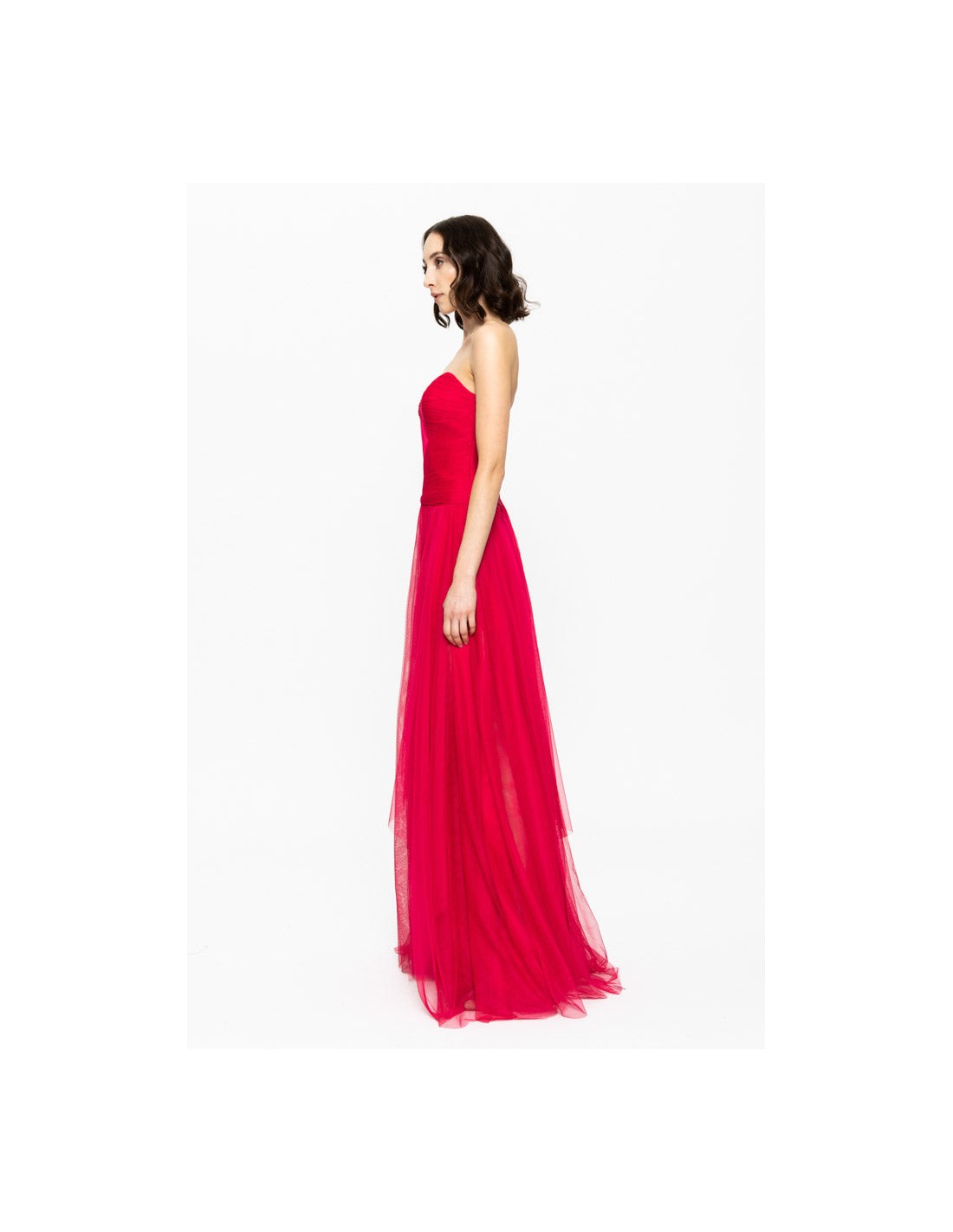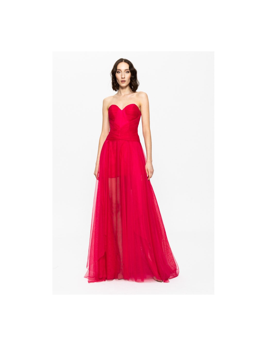 Vestido de gala rojo con escote corazón y falda de tul