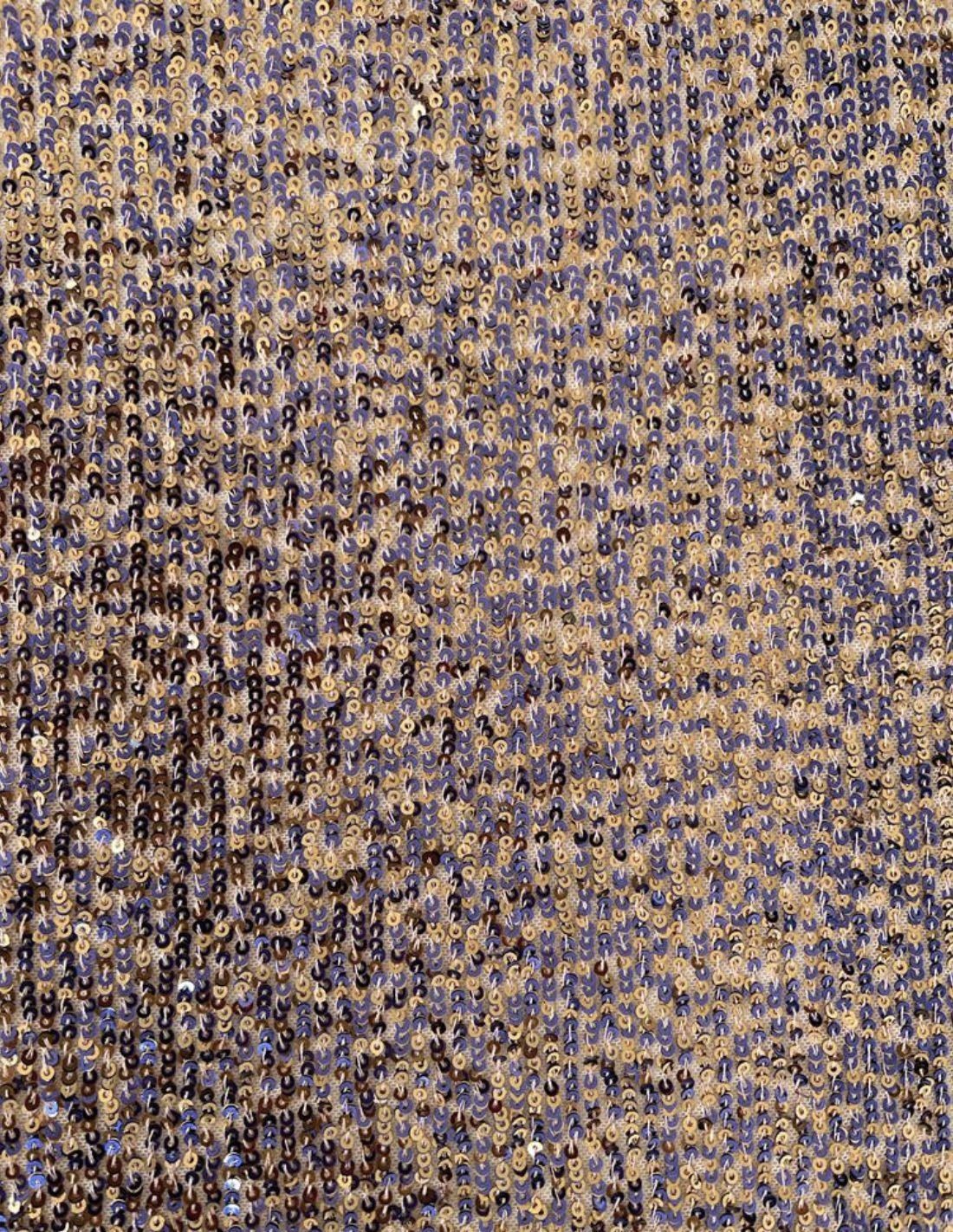 Este precioso vestido para invitada se realiza en un tejido de lentejuelas combinado con dorado y violeta muy favorecedor. Su diseño presenta un escote en V, manga francesa, corte por la rodilla, espalda escotada y cierre con cremallera invisible.