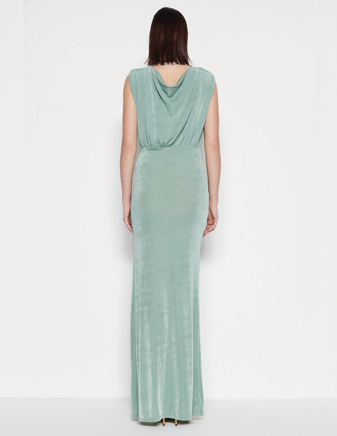 Tiene un color realmente ideal y un escote caído en cascada con ese detalle en los hombros que nos vuelve locas. Estamos seguras que con este Vestido de fiesta largo girarás cabezas y no dejarás a nadie indiferente.