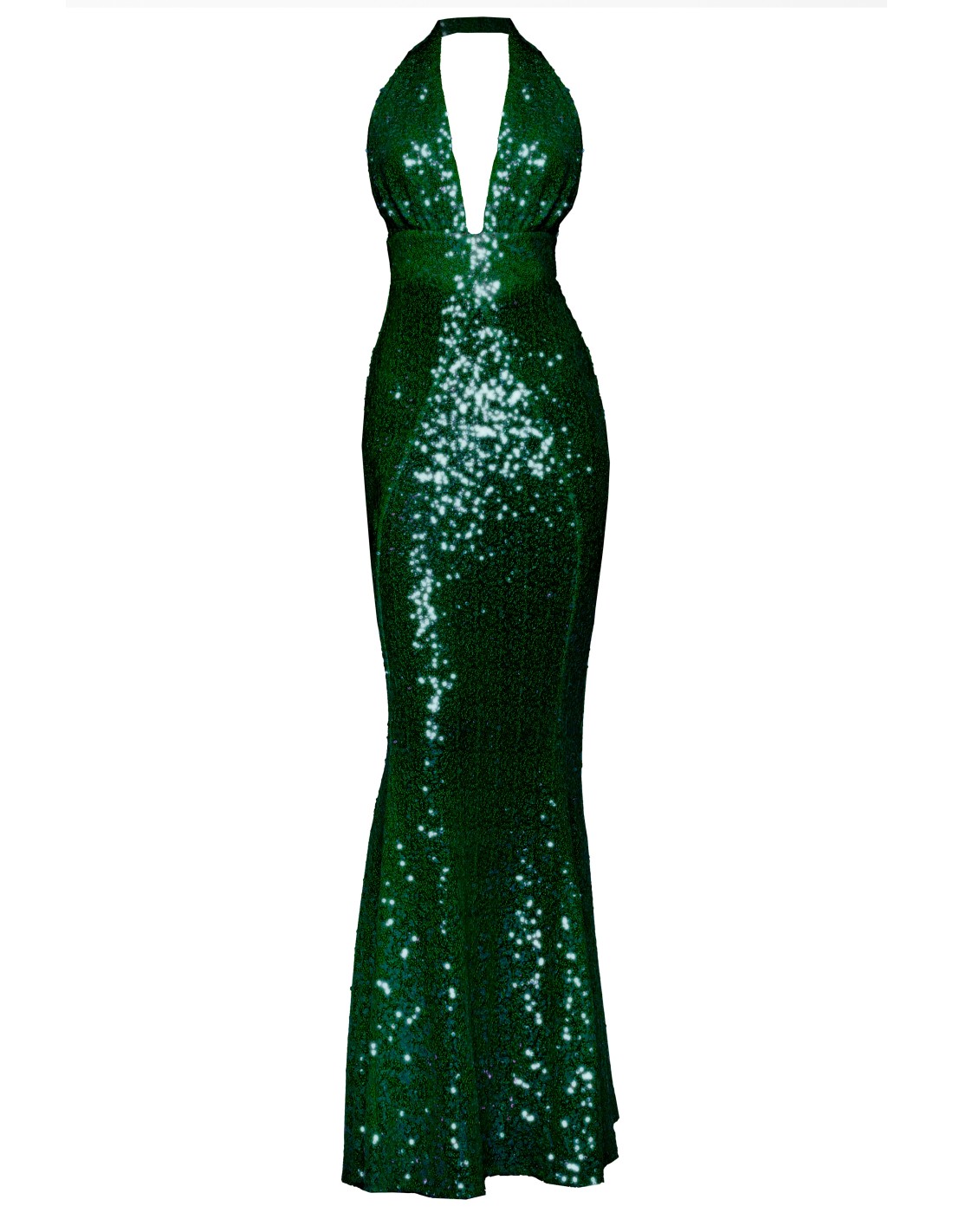 Este impresionante vestido verde esmeralda de lentejuelas con espalda abierta es la opción ideal para destacar en cualquier evento elegante o fiesta nocturna. El tono verde esmeralda, vibrante y sofisticado, se complementa a la perfección con el brillo de las lentejuelas, creando un efecto cautivador bajo las luces. Su diseño cuenta con un escote en pico profundo que realza de manera sutil el busto, mientras que la espalda abierta agrega un toque atrevido y seductor, dejando una impresión duradera en cualquier ocasión especial.