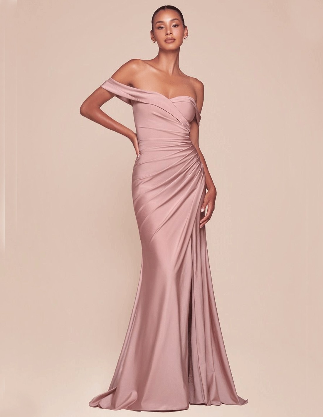 Este vestido de fiesta largo está confeccionado en satén elástico, brindando un ajuste impecable que realza tus curvas sin sacrificar la comodidad. Su escote corazón con hombros descubiertos, combinado con una cintura plisada y una sensual abertura en la pierna, aporta un toque de sofisticación y modernidad.