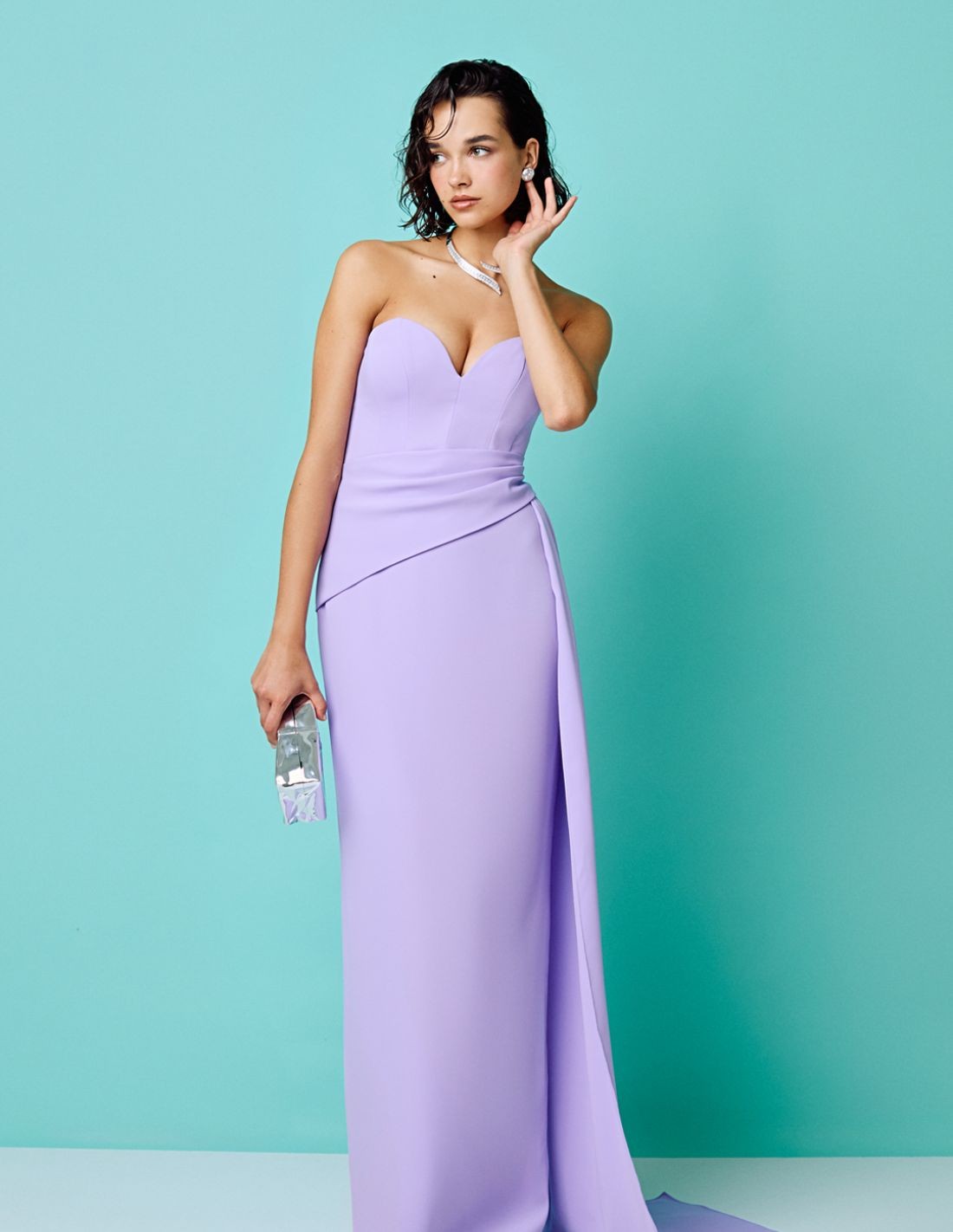 Vestido largo de fiesta con escote corazón y fajín lateral