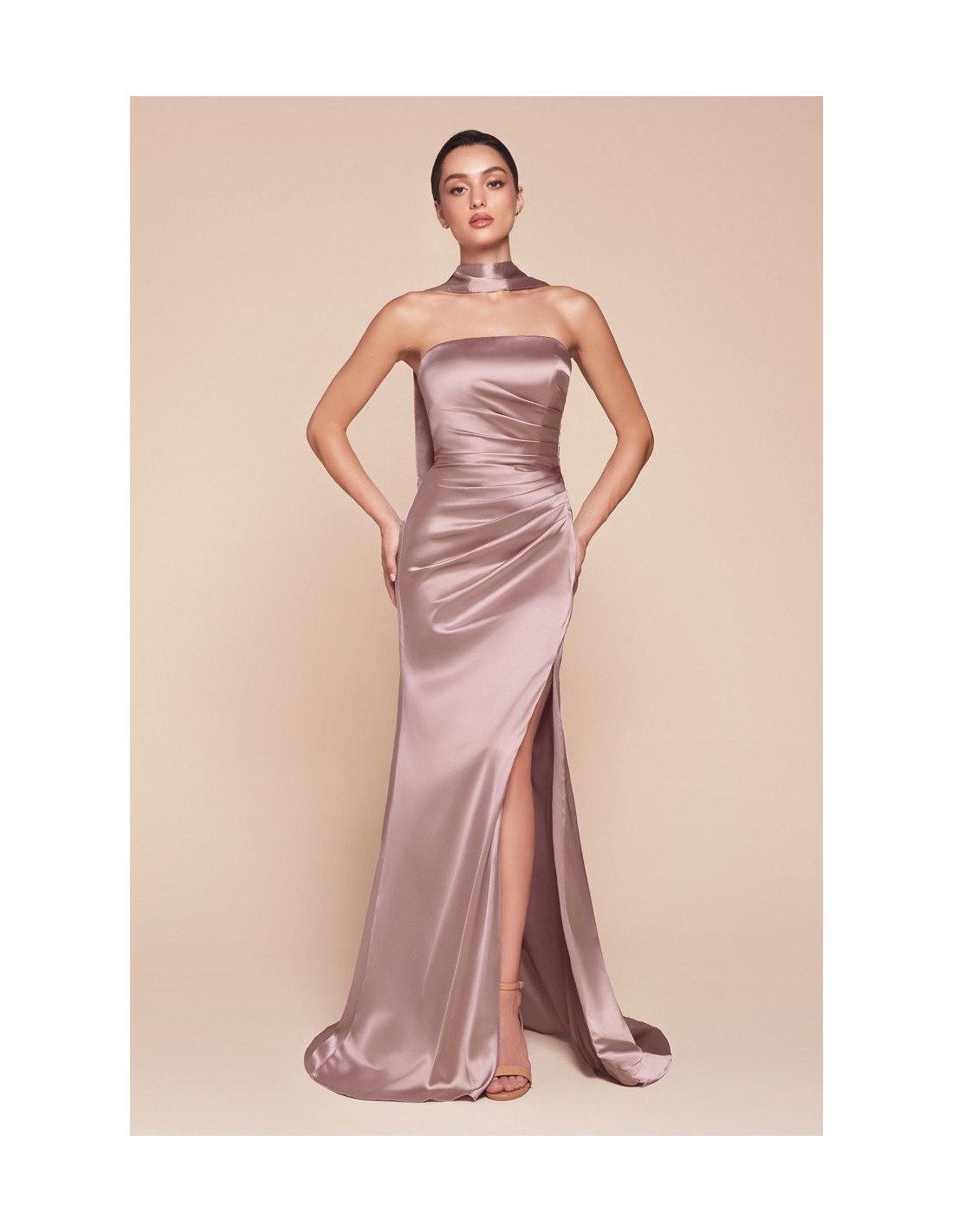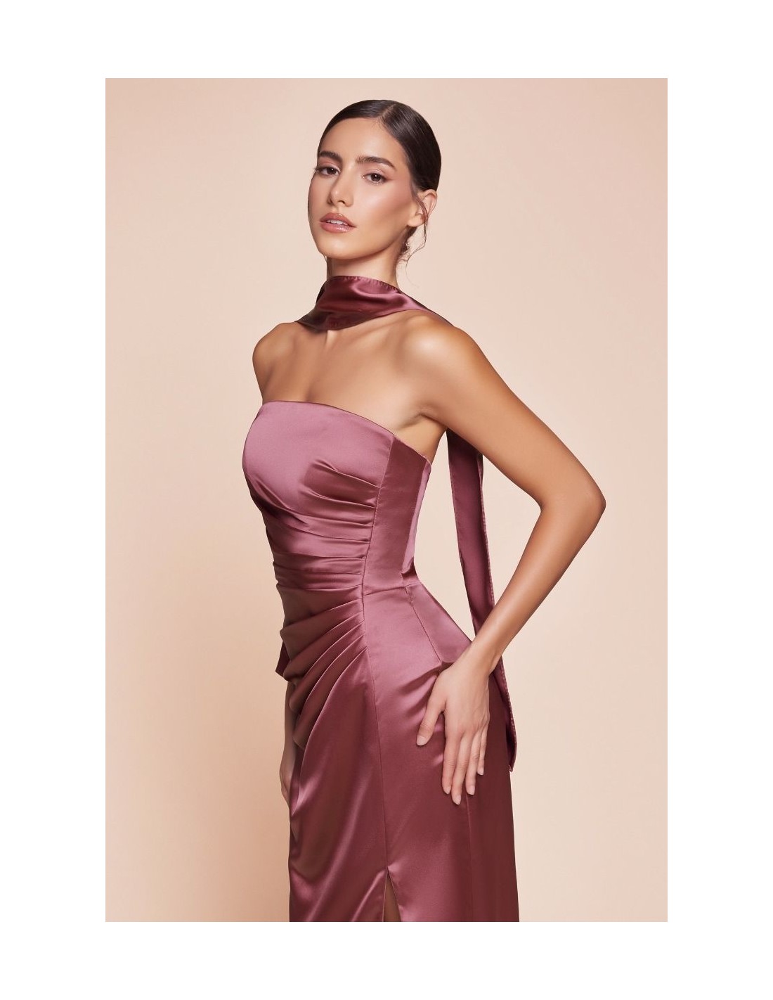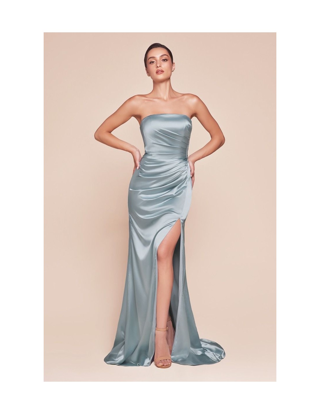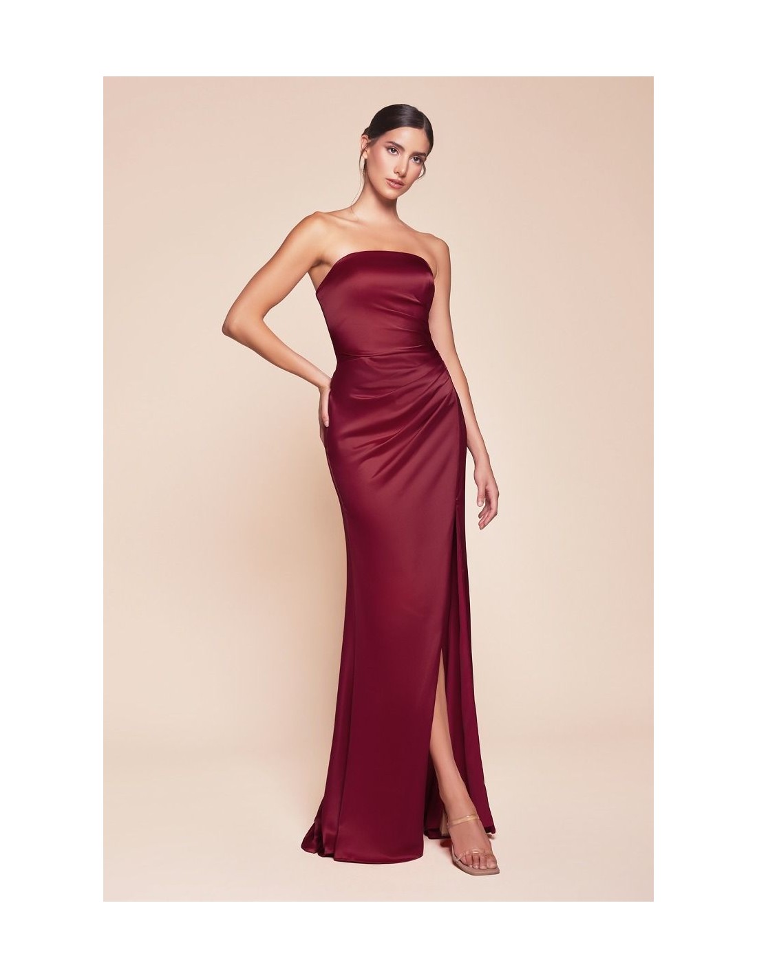 Luce radiante en tu próximo evento con este Vestido de invitada largo de palabra de honor recto, una opción elegante y sofisticada para bodas y ocasiones especiales. Su diseño incluye una abertura en la falda, que aporta un toque de sensualidad y movimiento, y una sutil cola para un acabado más refinado.