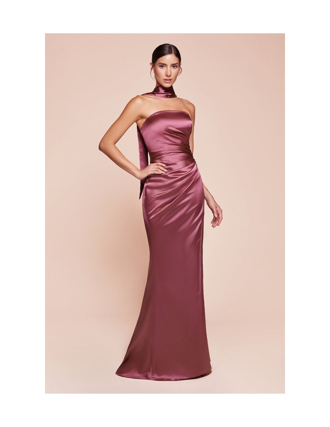 Vestido de invitada largo palabra de honor recto