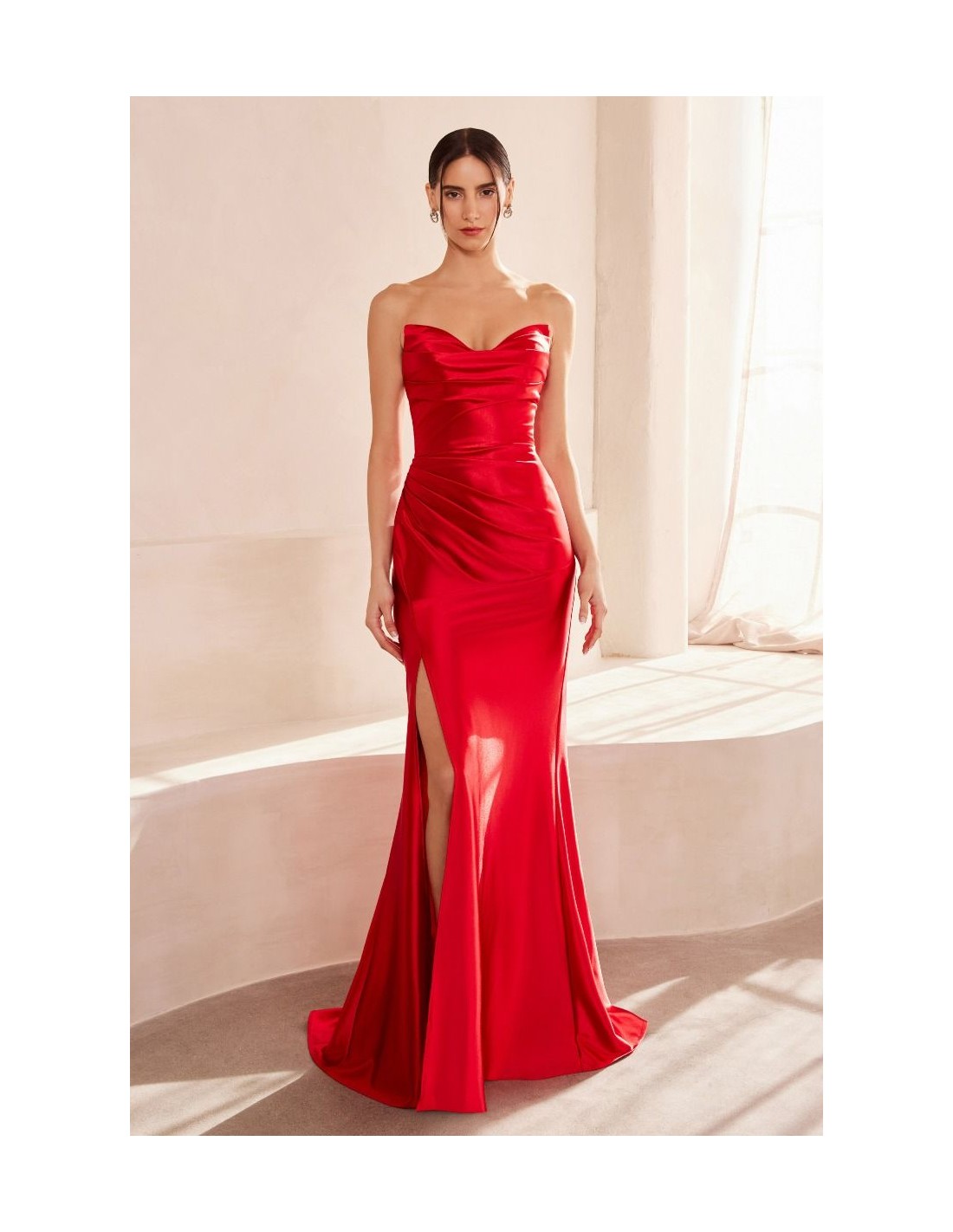Vestido de invitada largo palabra de honor con escote corazón satinado