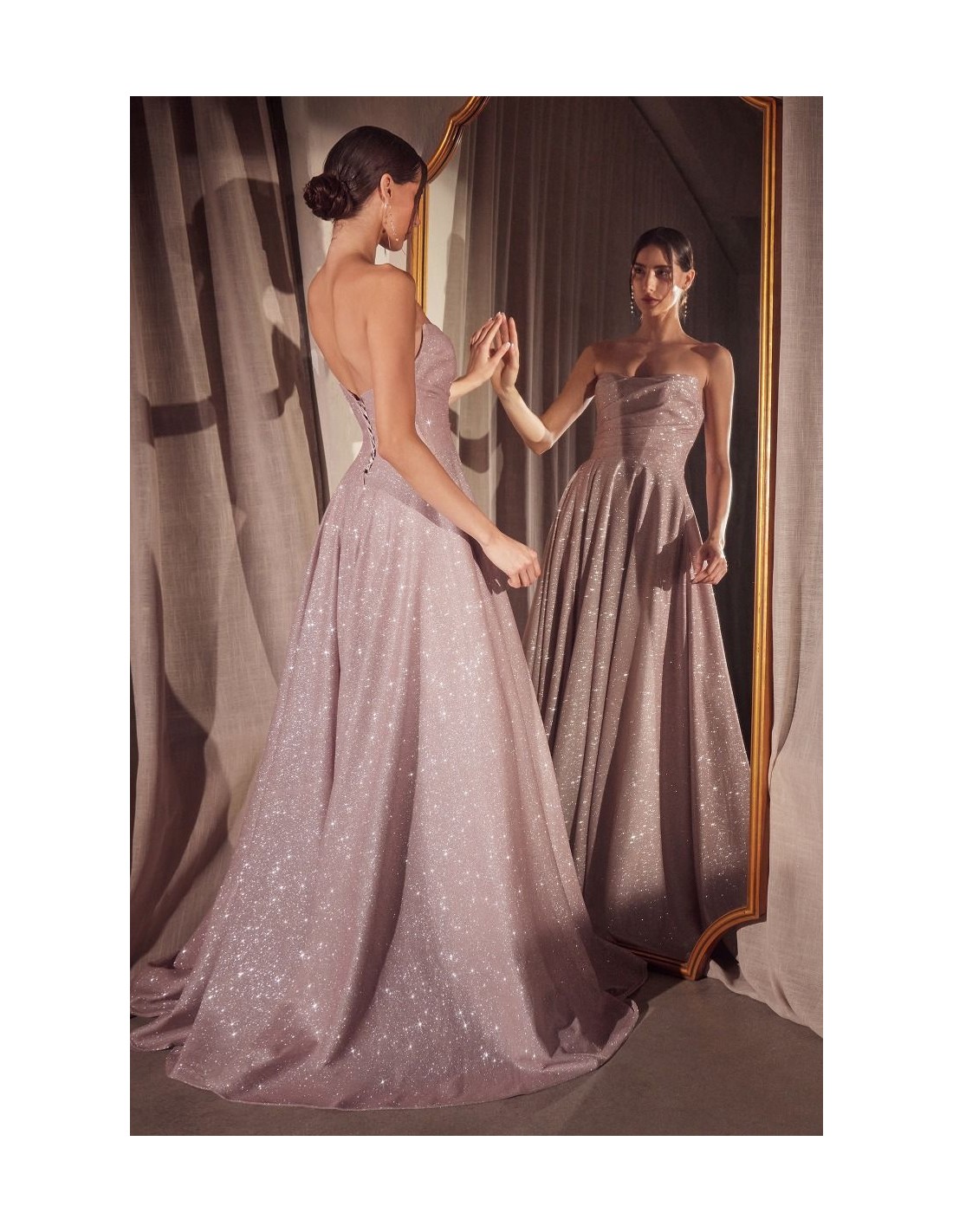 Vestido de fiesta palabra de honor con tejido brillante