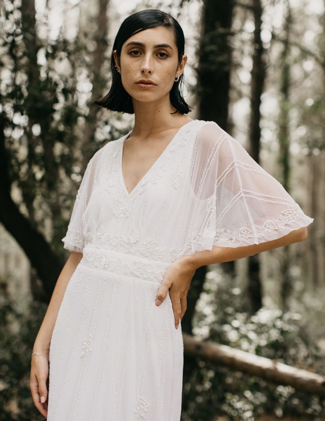 vestido largo blanco con manga corta fluida