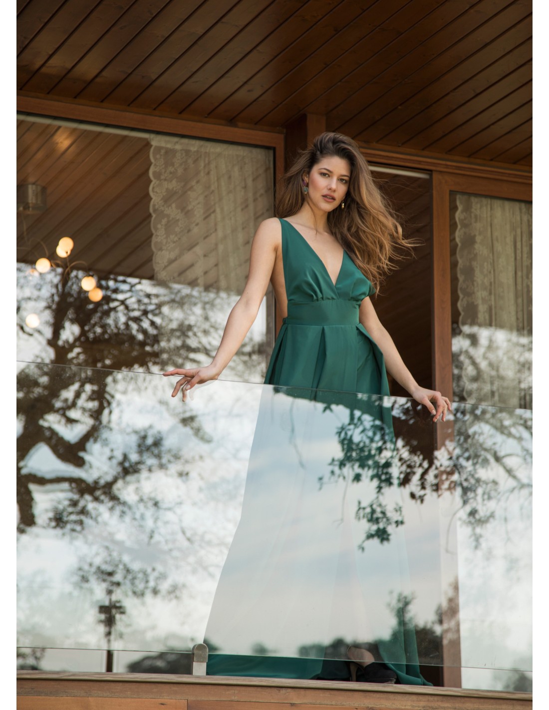 Haz una declaración de estilo y elegancia con este vestido largo verde que te hará brillar en tu próximo evento. Un vestido cómodo y elegante, con diseño largo, con tirantes anchos, con escote pronunciado y con una apertura en la falda, que le aporta un toque de vuelo al vestido. Un vestido totalmente forrado y con cierre invisible en el lateral. Ideal para bailes de graduación, bodas y otros eventos especiales.
