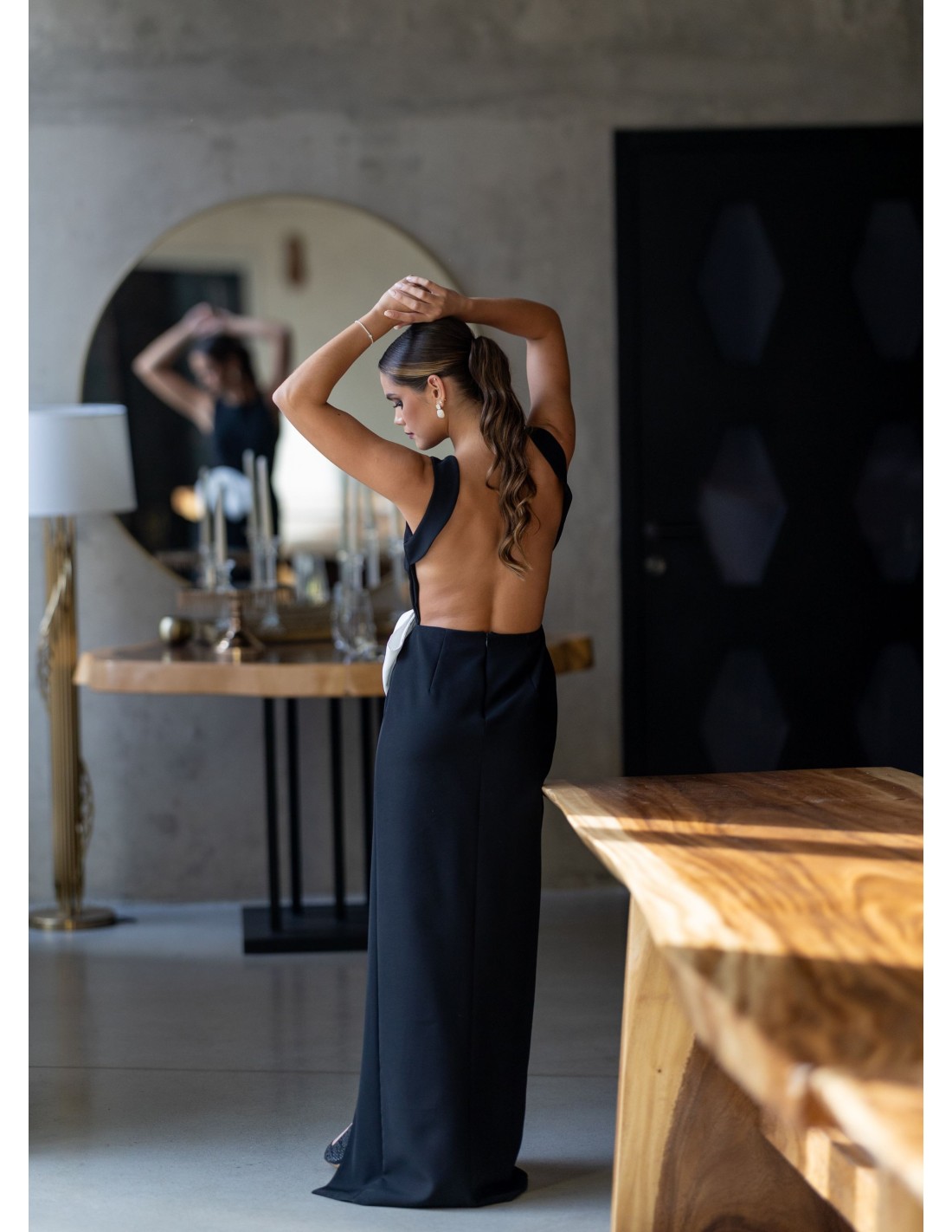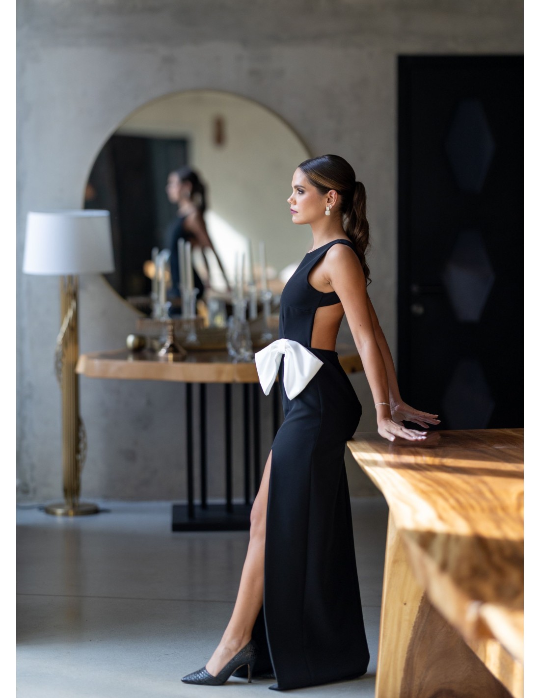 Vestido de invitada largo negro con lazo
