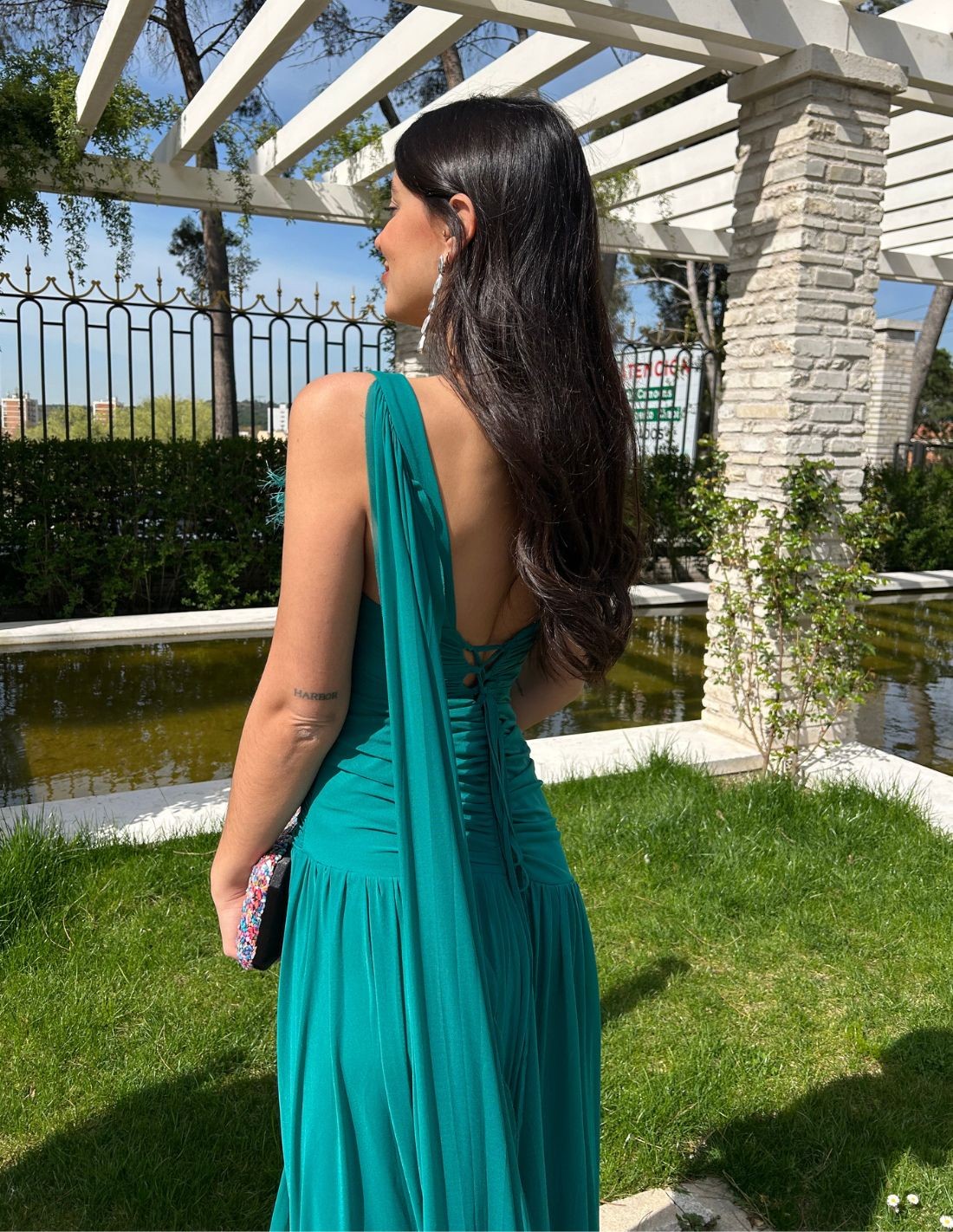 Deslumbra en tu próximo evento con este vestido largo asimétrico con un espectacular escote en la espalda. Diseñado para realzar tu elegancia, es la opción ideal para bodas, graduaciones y eventos de tarde. Su exclusivo tejido elástico microperforado garantiza comodidad y un ajuste perfecto, sin necesidad de plancha.