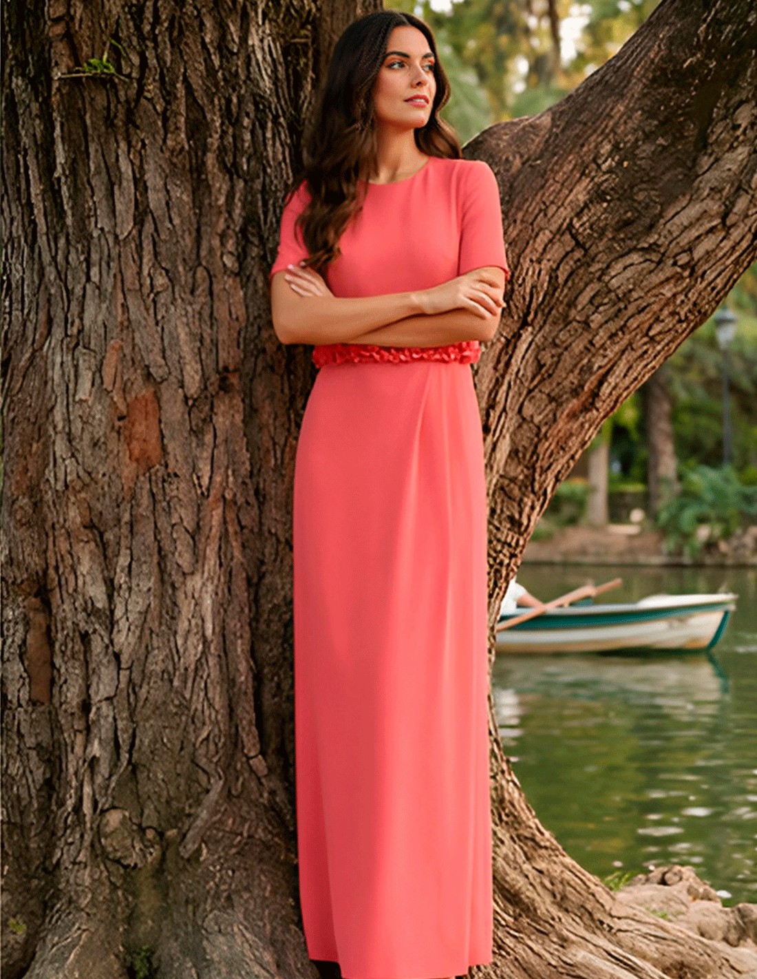 Diseñado y fabricado en España. El color de la fotografía del tono coral difiere un poco de la realidad debido a que utilizamos flash en las fotografías. Mirad la fotografía con la carta de color para ver el tono real. La falda no tiene abertura