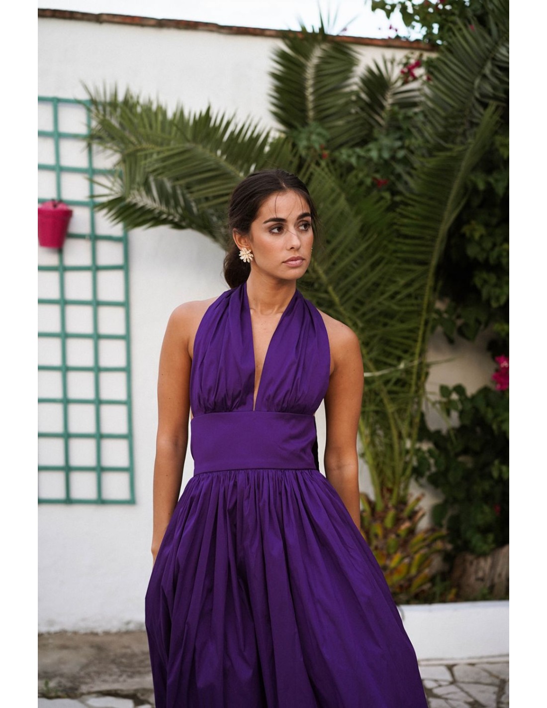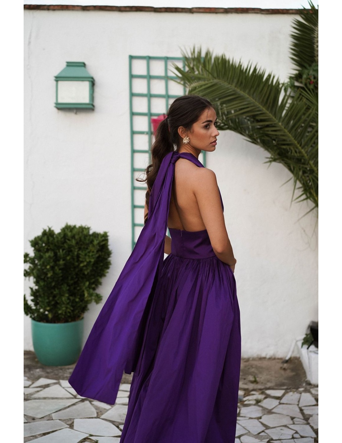 Destaca en tu próximo evento con este vestido largo, que te hará brillar seguro. Un vestido largo con diseño recto en color morado oscuro, con una maxi falda que aporta un toque de vuelo a la prenda y un top con múltiples opciones para llevarlo. Ideal para un evento como bodas de tarde o graduaciones, incluso para una ocasión especial combinándolo con sandalias para un look más casual.