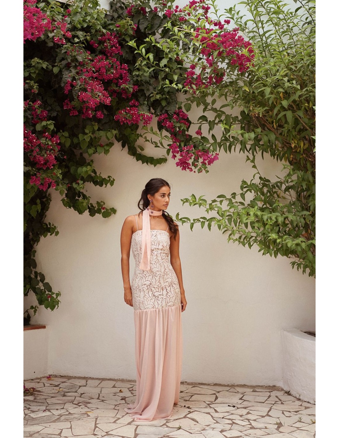- Vestido largo rosa perla.