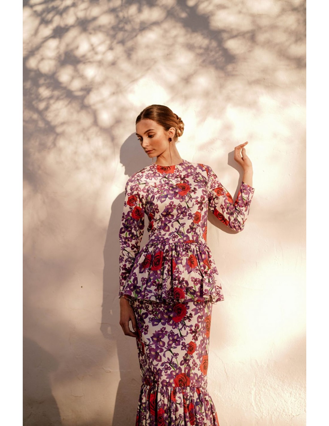 Deslumbra en tus eventos con este precioso vestido largo estampado que destaca por su cintura con detalle péplum y un elegante bajo con volante, que aporta movimiento y sofisticación al diseño.