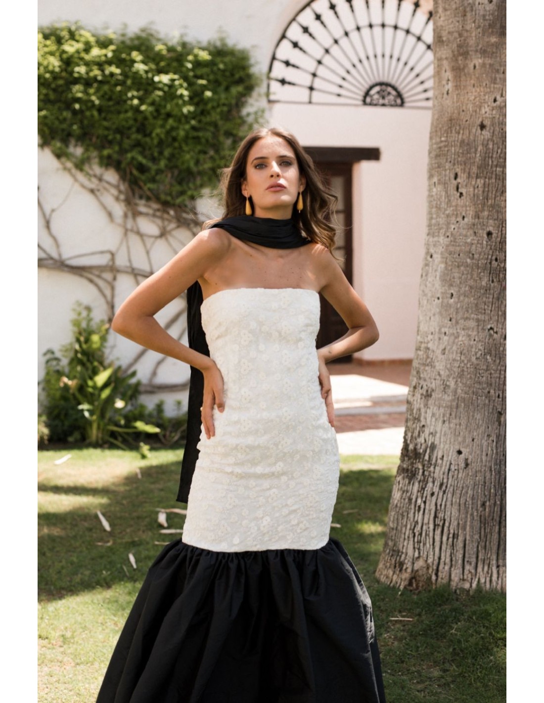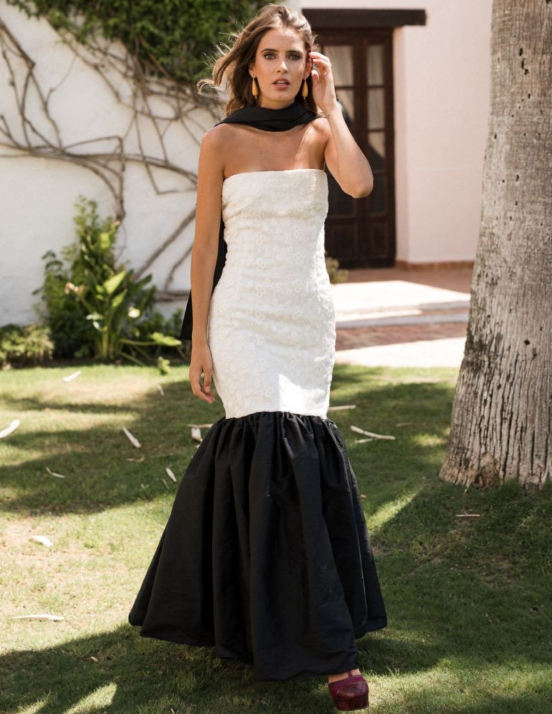 - Vestido largo blanco y negro.
