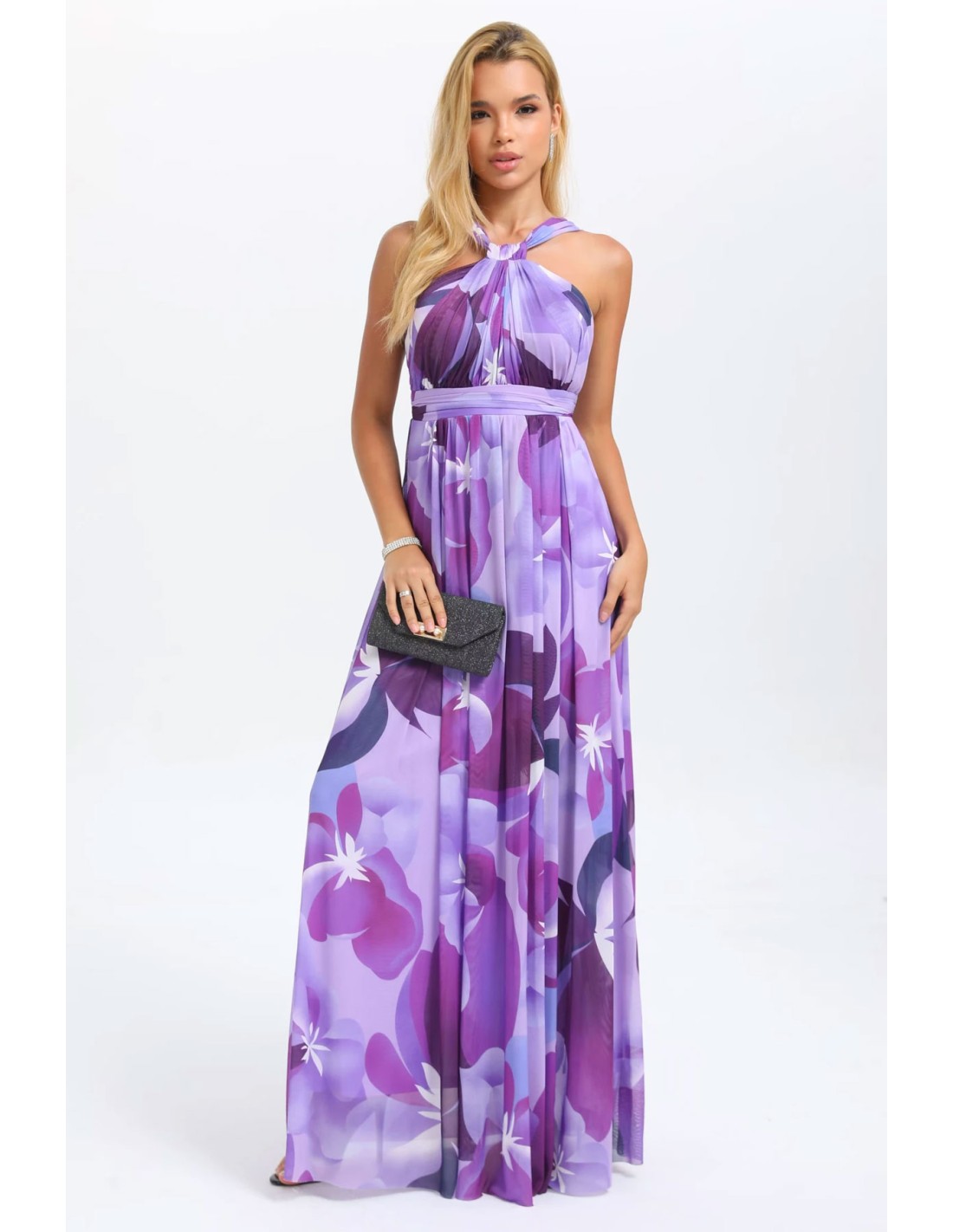 Vestido de fiesta largo con escote halter estampado floral, Elegancia para la Invitada de Boda Perfecta