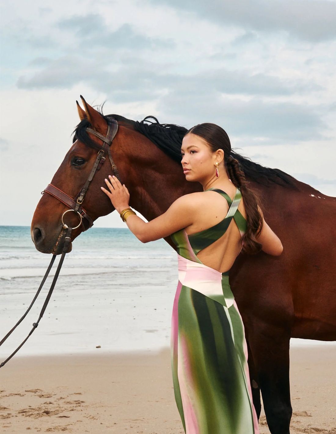 Este vestido largo con estampado es ideal para tu próximo evento de verano. Con escote pronunciado de pico en V, tirantes anchos y cinturilla en la parte inferior del busto, con falda larga recta y fluida, espalda abierta con tirantes anchos cruzados, en estampado degradado en tonos verdes y lilas. Perfecta para cualquier evento de verano, ya sea una boda o incluso una graduación.