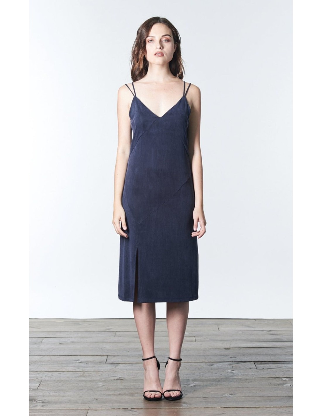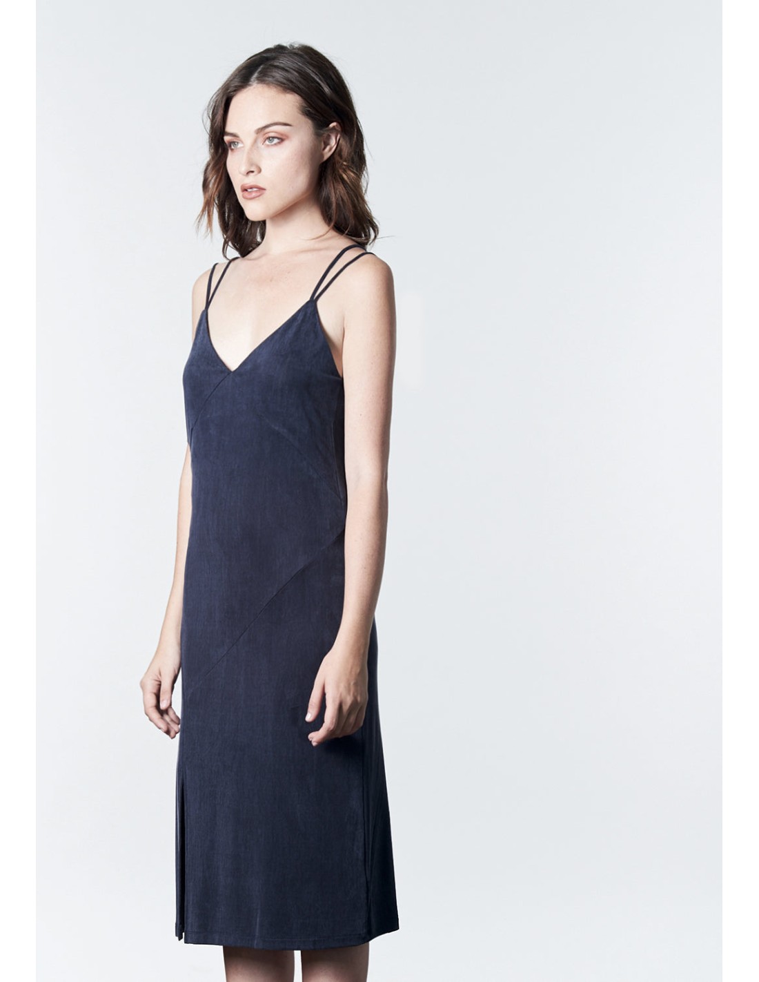 Vestido midi con tirante doble y abertura lateral