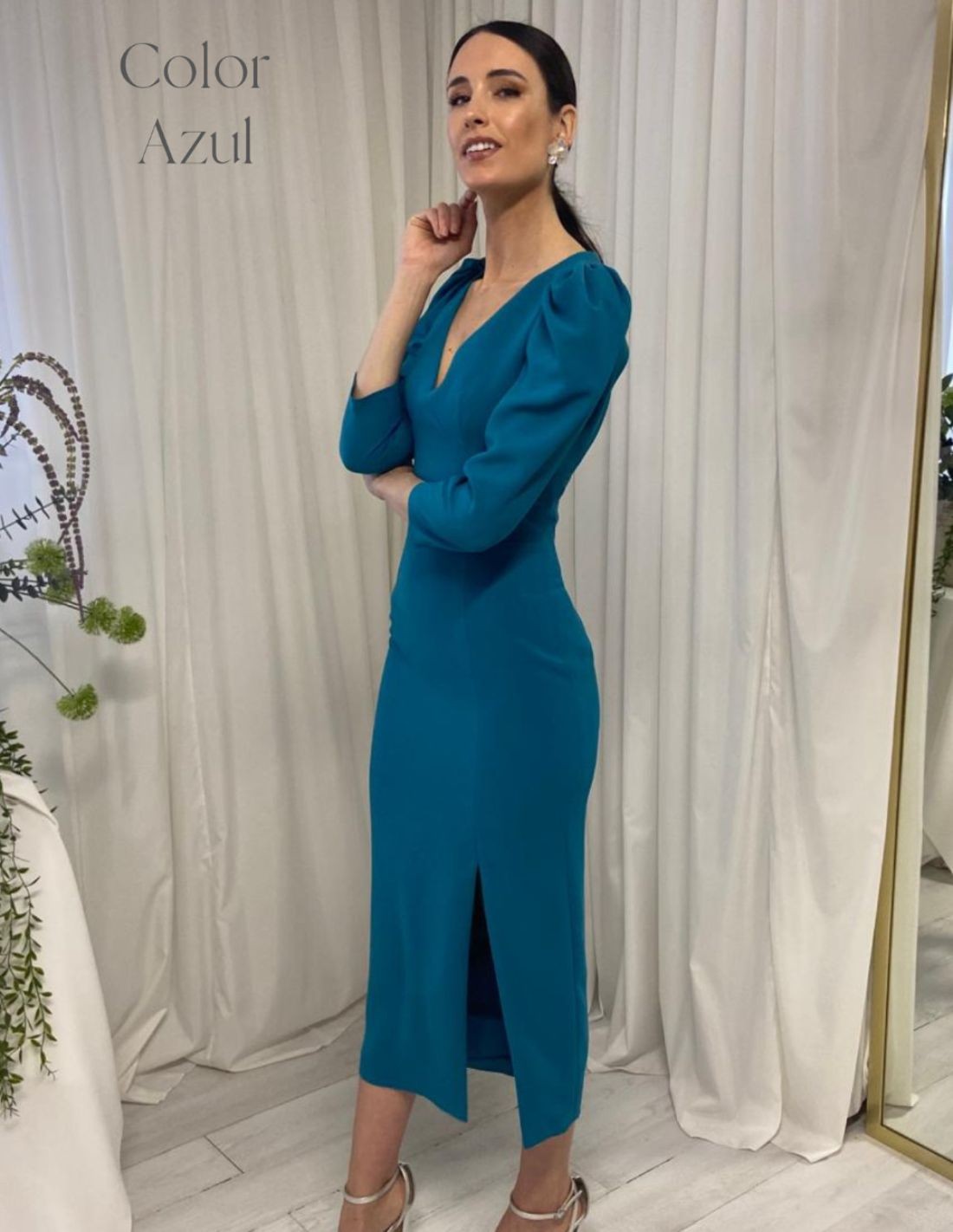 Brilla en tu próximo evento y luce este elegante vestido midi, apostando por la comodidad y la sencillez. Un vestido con diseño de corte midi, con manga francesa abullonada y escote de pico, elige si quieres la espalda descubierta o la espalda subida según tus gustos. Disponible en varios colores: rojo, verde, lila, naranja, buganvilla o azul petróleo. Diseñado y confeccionado a mano en España.