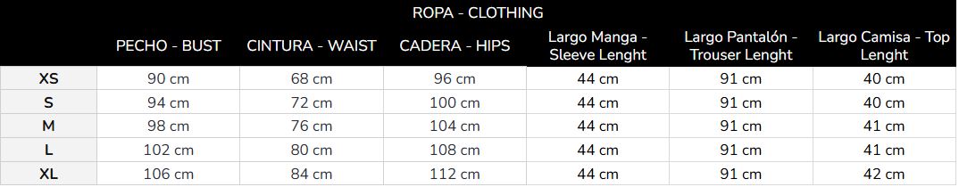 XS - Pecho: 88 cm | Cintura: 68 cm | Cadera: 96 cm | Largo manga: 44 cm | Largo vestido: 150 cm