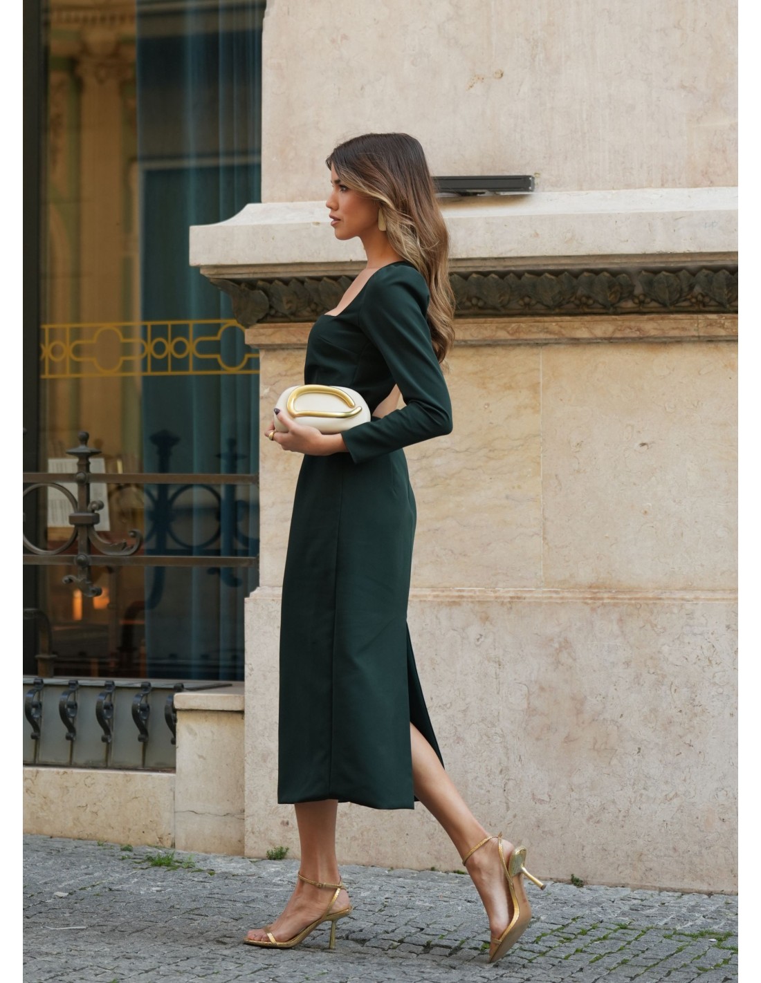 Este vestido midi verde oscuro es la opción perfecta para lucir elegante y sofisticada en cualquier ocasión. Su escote cuadrado aporta un toque moderno y favorecedor, mientras que la manga larga añade estilo y comodidad, ideal para eventos de temporada. El cierre invisible en el lateral asegura un ajuste impecable y discreto, y su diseño totalmente forrado garantiza una caída perfecta y una sensación agradable al llevarlo.