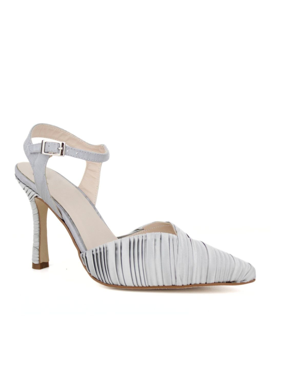 Este zapato de tacón estilo salón de tejido plisado gris cuentan con un tacón de 8 cm que eleva tu look en cualquier ocasión.