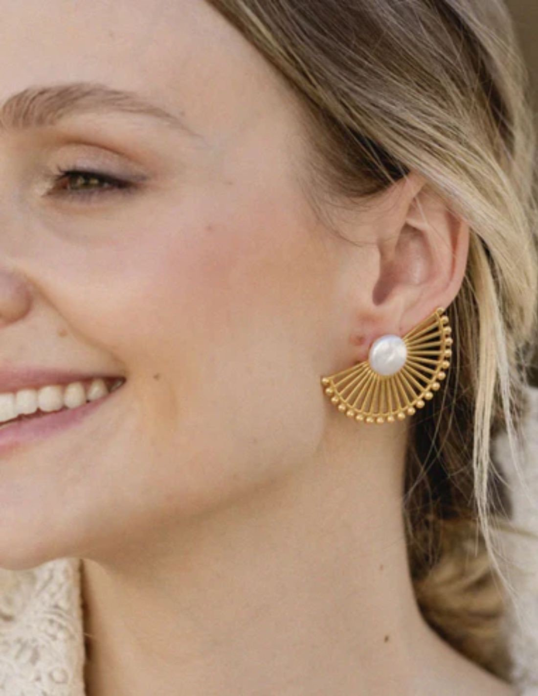 Ces boucles d'oreilles au design semi-circulaire et à la pierre centrale se distinguent par leur élégance minimaliste. Réalisées en laiton plaqué or, elles présentent une structure semi-circulaire polie qui encadre délicatement une pierre centrale soigneusement sertie. Leur forme moderne et raffinée apporte une touche sophistiquée qui s'accorde avec tous les looks, qu'ils soient décontractés ou habillés. Légères et confortables, elles sont idéales pour être portées tout au long de la journée sans perdre de leur distinction.