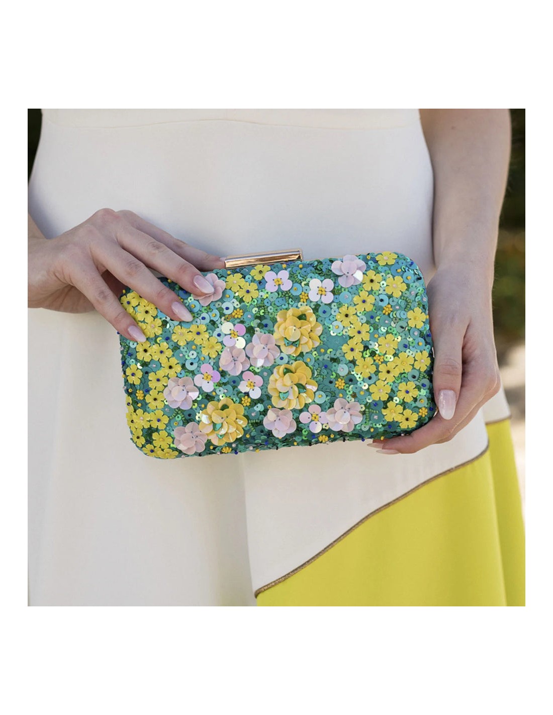 Découvrez lapochette florale strassée, un bijou qui apporte une touche de couleur et de fraîcheur à votre look. Son motif floral multicolore dans les tons turquoise, rose et jaune fait de cette pochette une pièce unique, parfaite pour se démarquer lors d'un événement. Compact et élégant, ce sac rigide est doté d'un fermoir en métal pour garder vos essentiels en sécurité, tandis que sa fabrication artisanale ajoute une touche exclusive et unique.