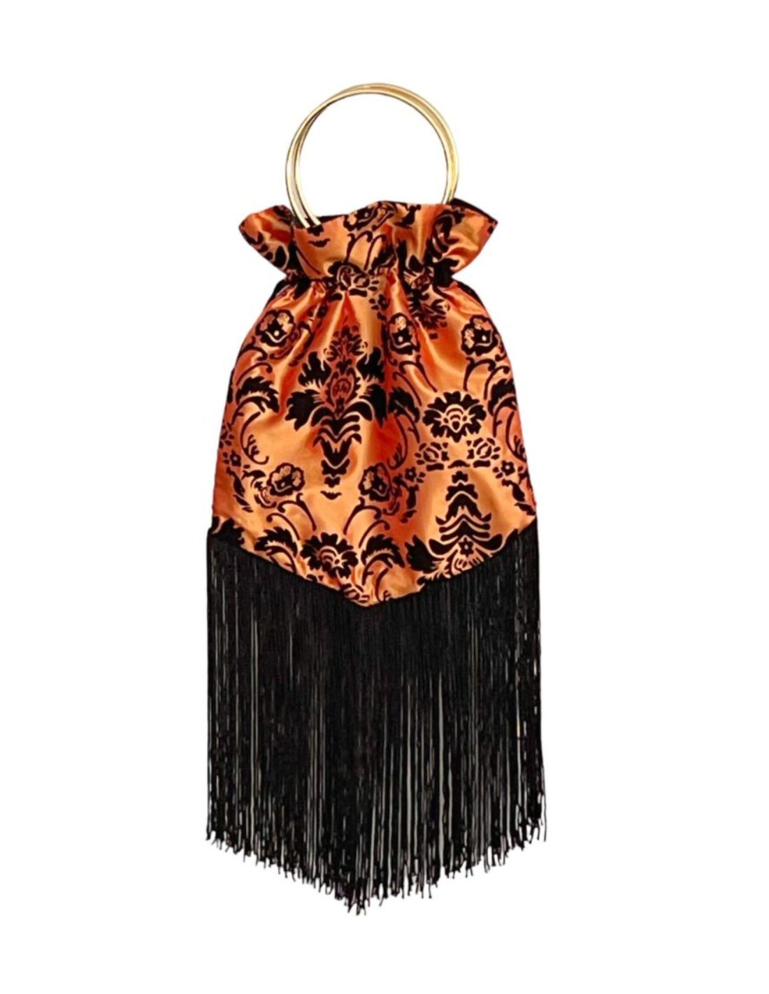 Élégant sac de fête réalisé à la main en tissu taffetas, idéal pour ajouter une touche chic à vos événements ou à vos looks décontractés. Conçu avec un anneau pratique pour le porter à la main et une chaîne intérieure pour le suspendre, ce sac allie fonctionnalité et style.