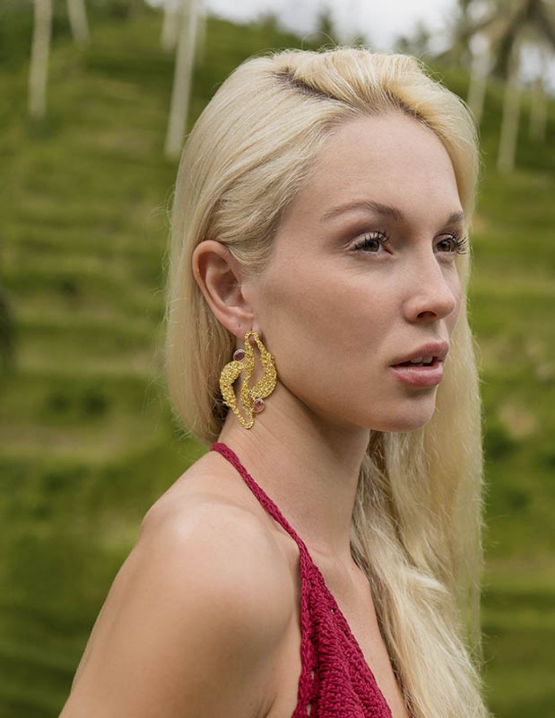 - Matériau : laiton plaqué or avec pierres.