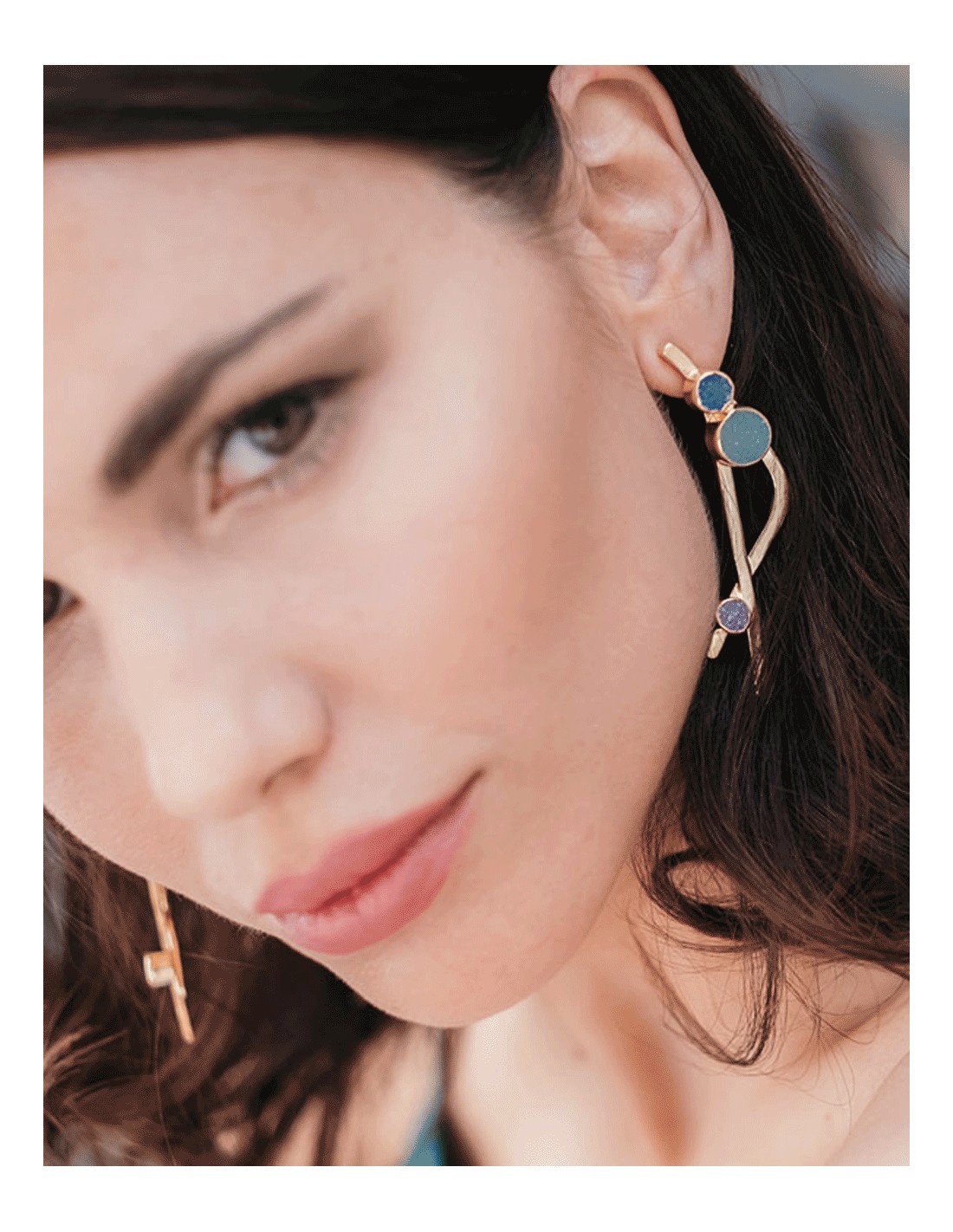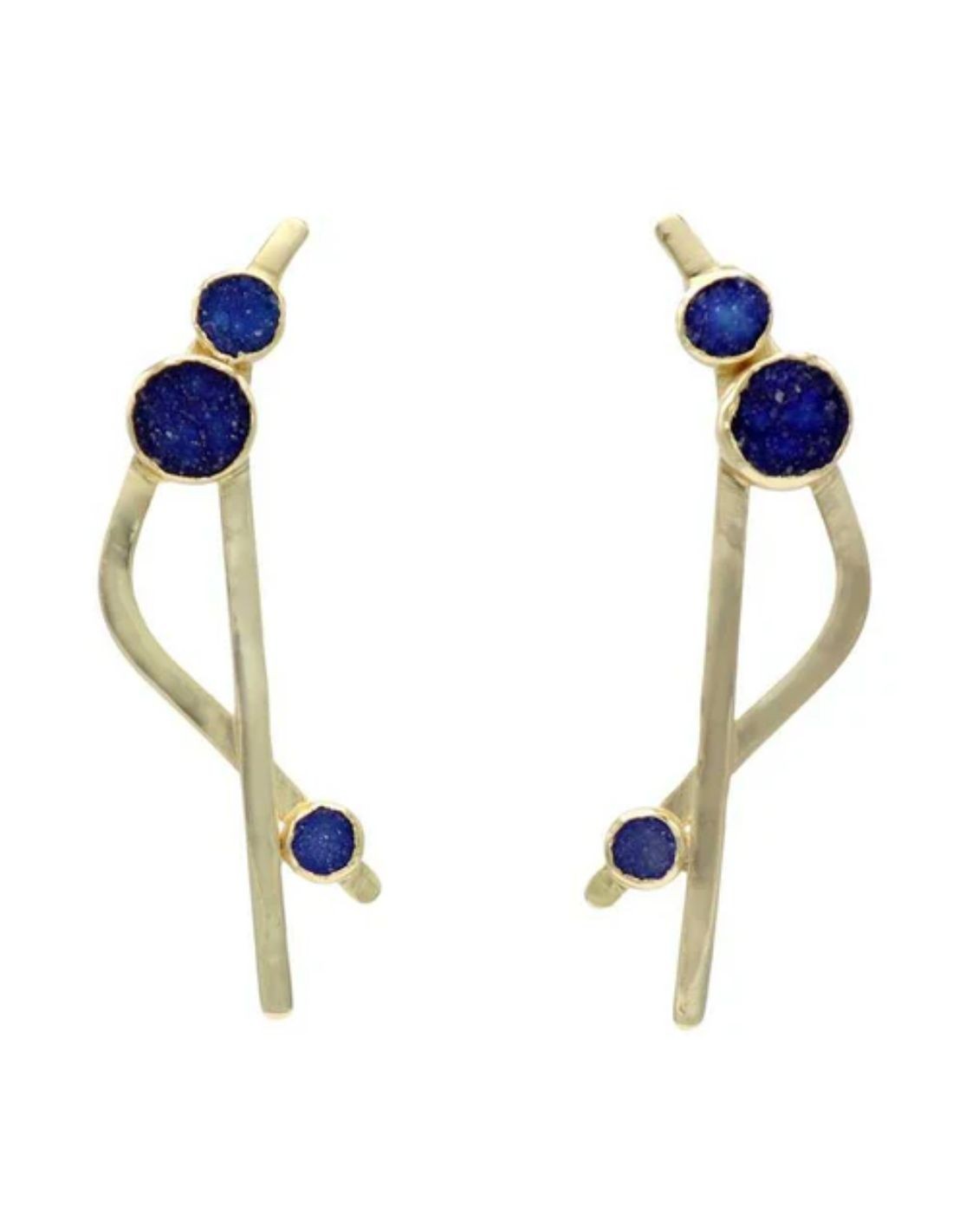 Ces boucles d'oreilles en forme de lignes croisées avec de petites pierres druzes dans les tons bleus sont un accessoire dont vous tomberez amoureuse. Pour être l'invitée parfaite, amusez-vous à choisir un look sophistiqué et élégant à combiner avec ces boucles d'oreilles. Vous réussirez votre prochain événement, nous vous l'assurons.