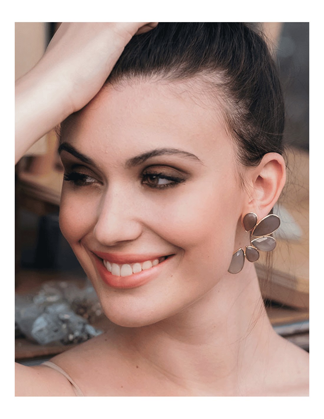 - Matériau : laiton argenté avec pierres.