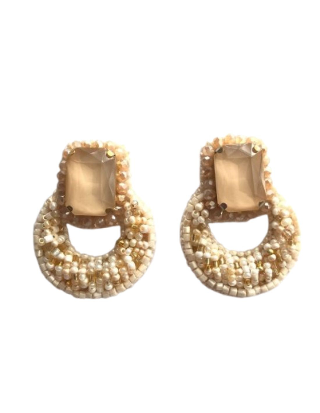 Boucles d'oreilles brodées de perles et cristal central rectangulaire