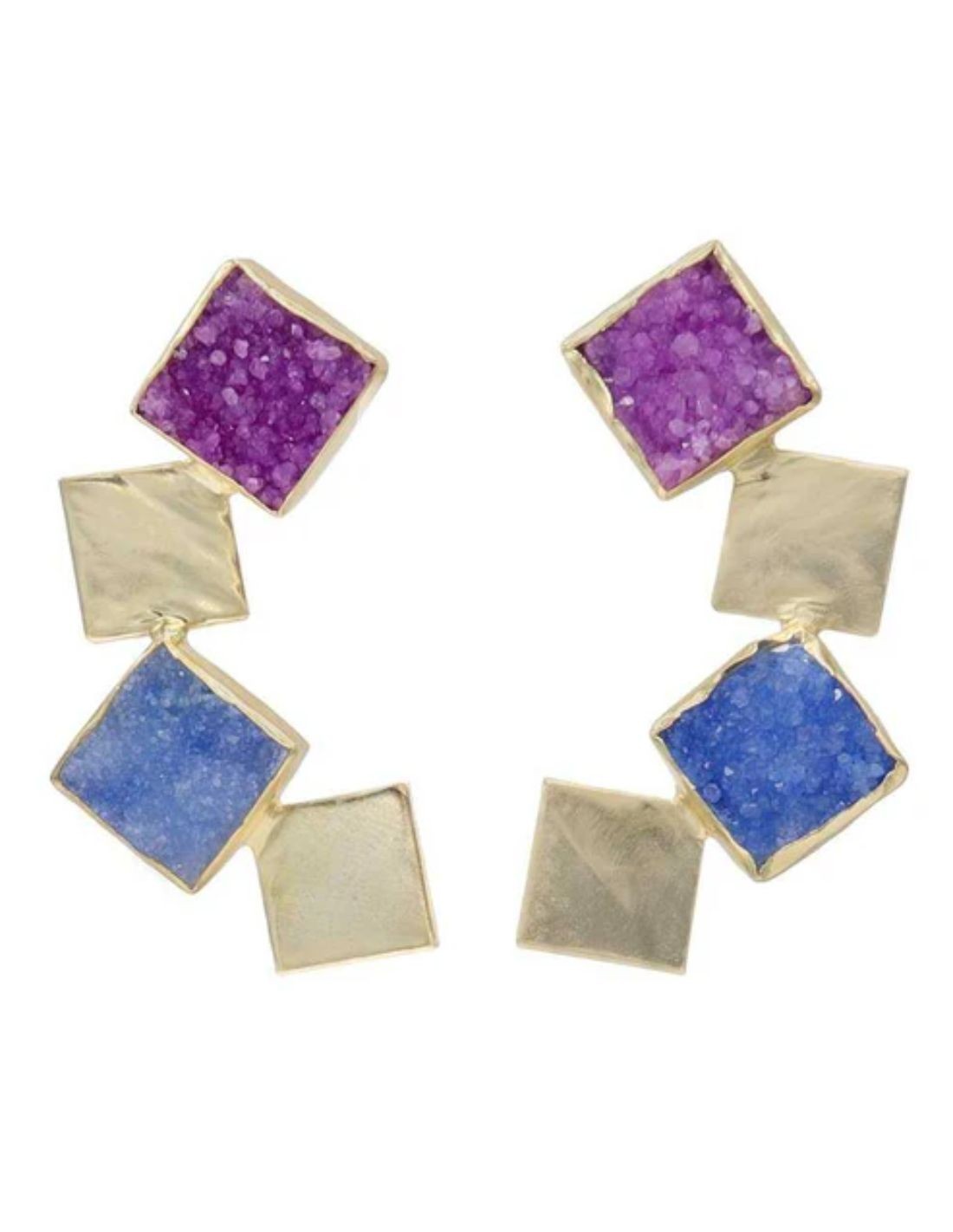 Boucles d'oreilles de fête en or avec pierres géométriques colorées