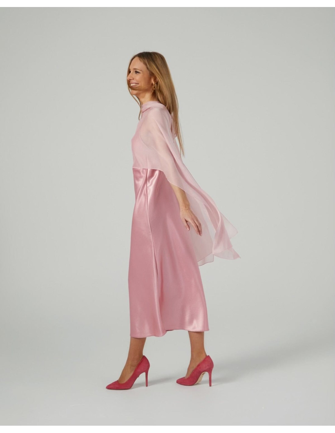 Longue cape en mousseline de soie cationique rose pâle à double fil pour les invitées, les demoiselles d'honneur et les occasions spéciales.
