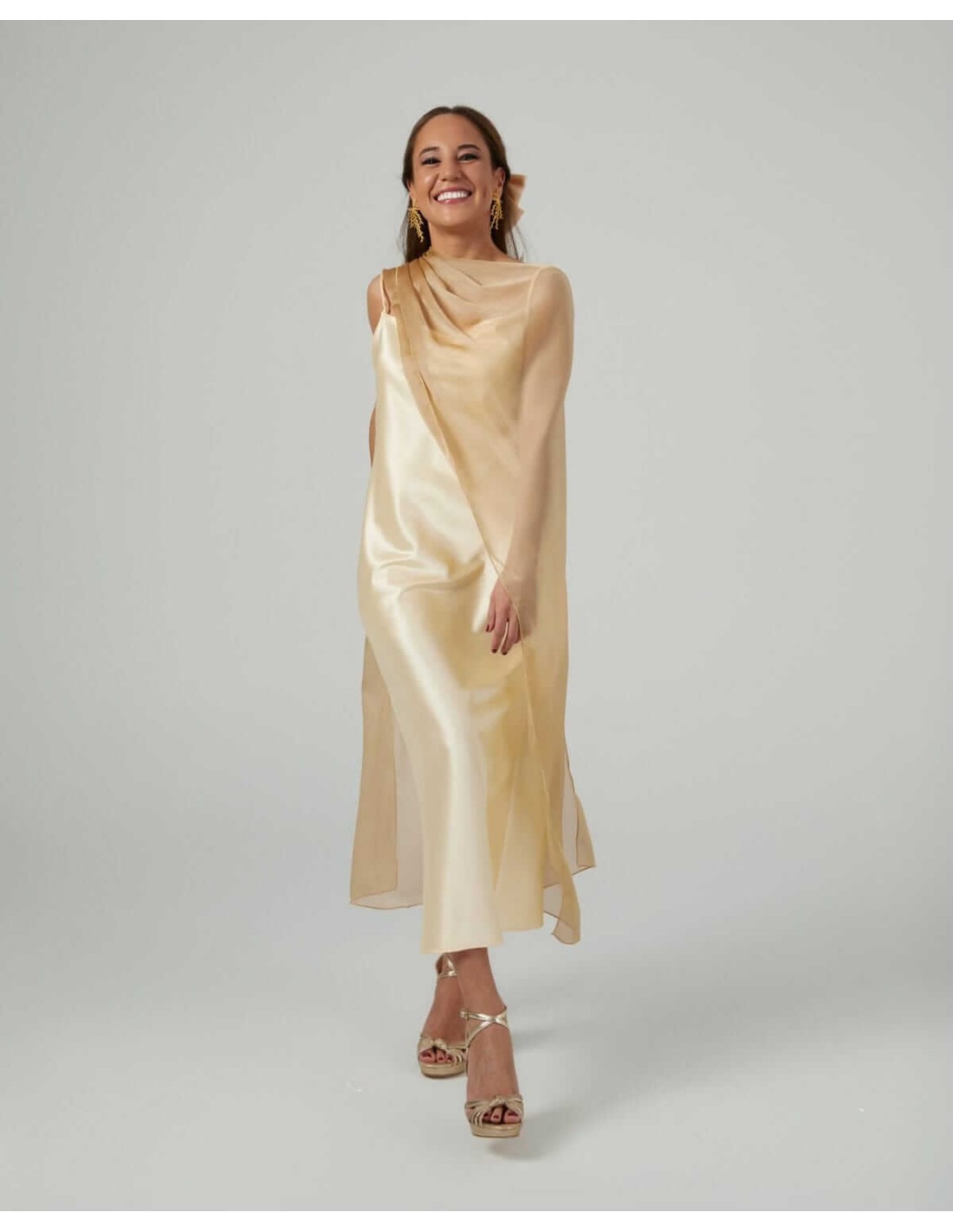 Cape midi en mousseline de soie couleur or