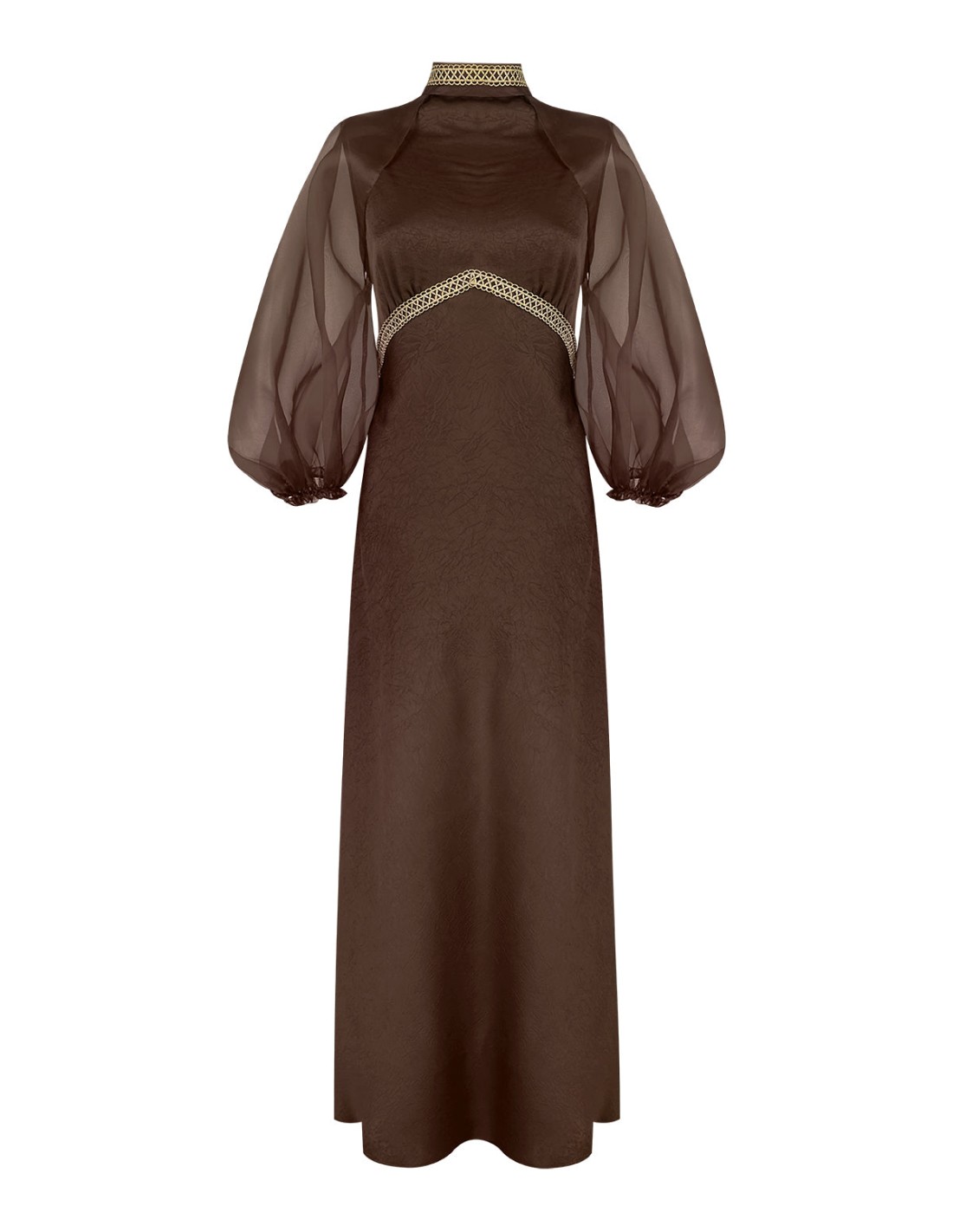 Ces manches en organza marron chocolat ajoutent de l'élégance et de la sophistication à n'importe quel look. Flatteuses, légères et dotées d'un volume subtil, elles sont le complément idéal pour transformer une simple robe en une tenue d'invité impeccable.
