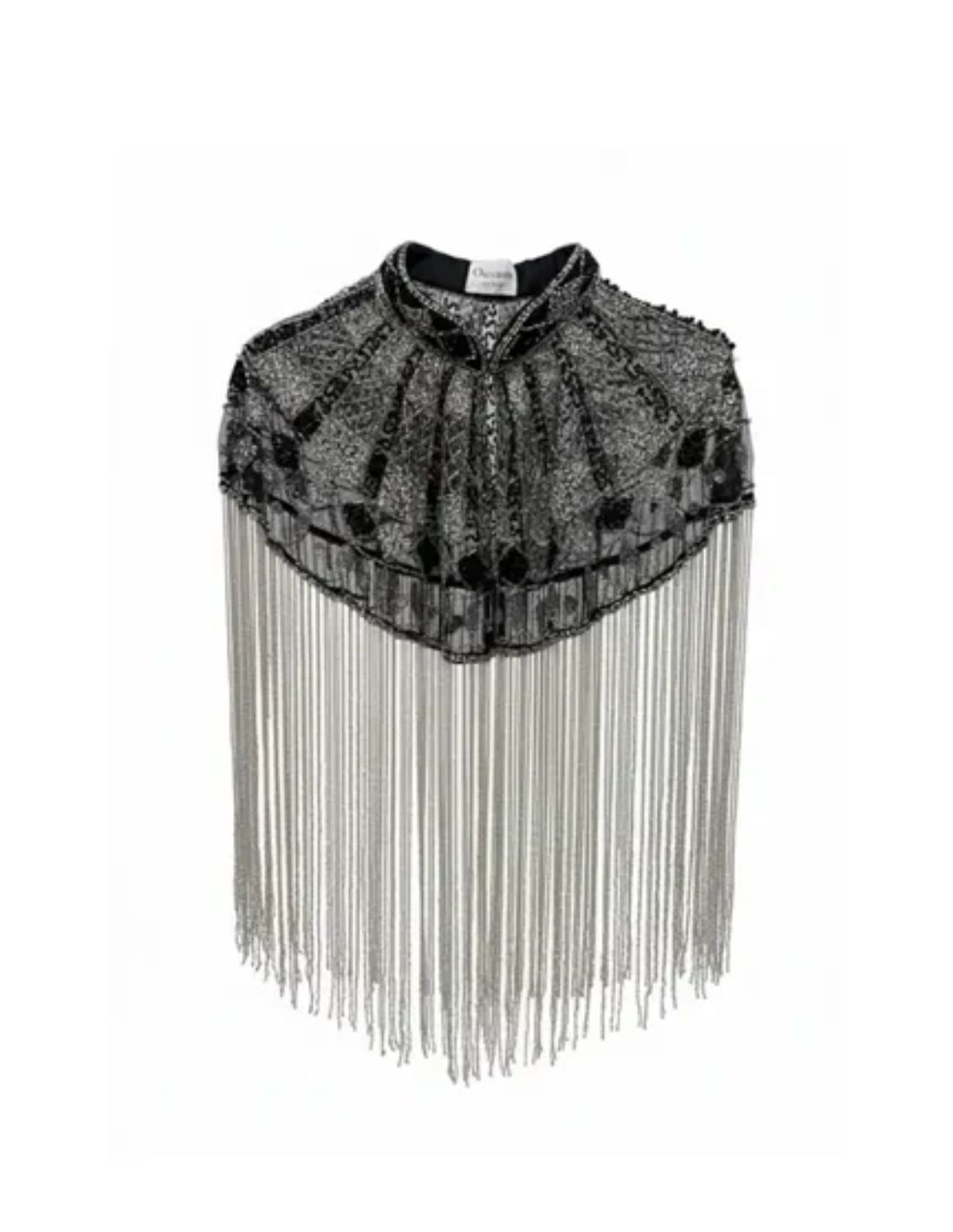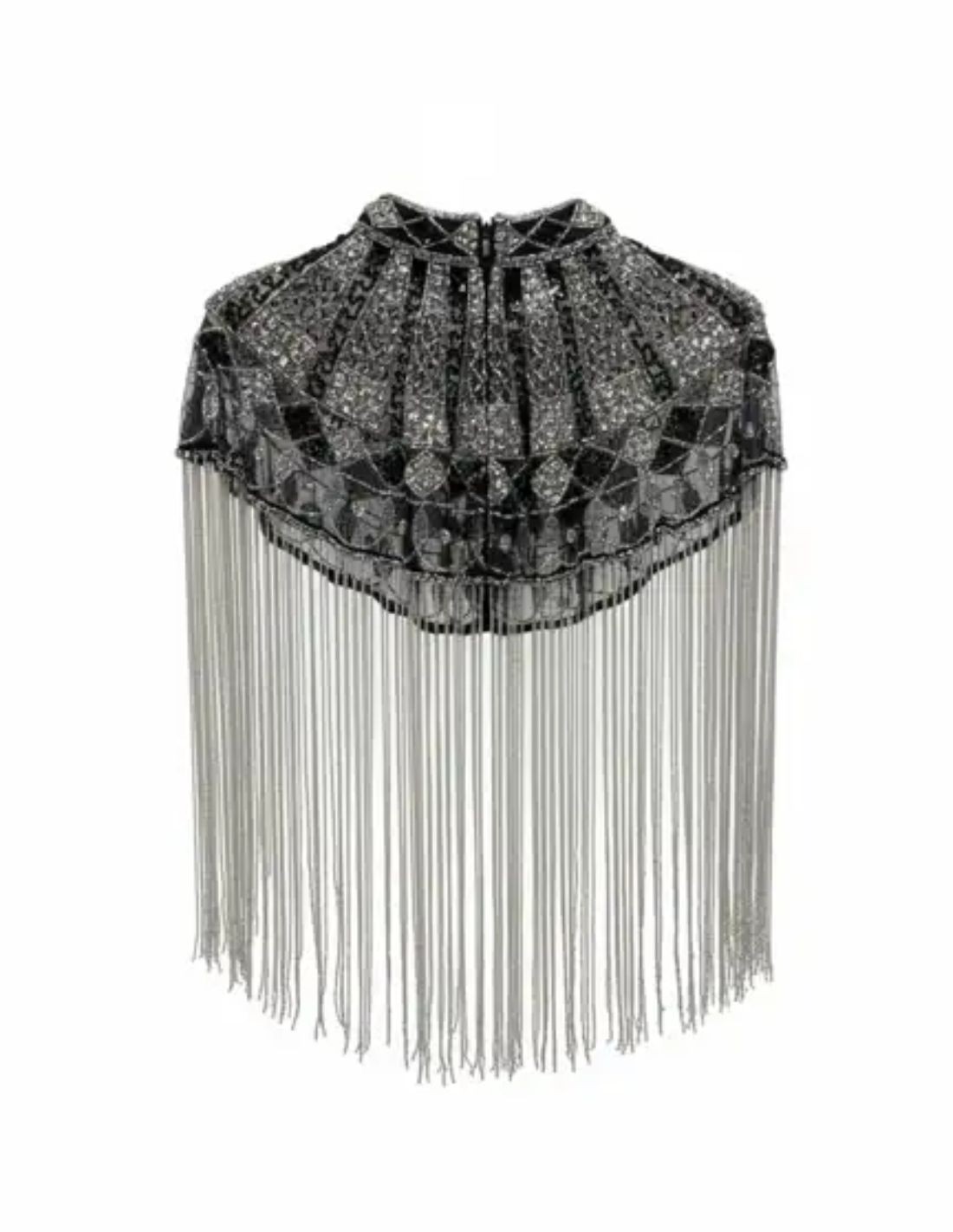 Cape ornée de bijoux avec broderie de paillettes et motifs géométriques
