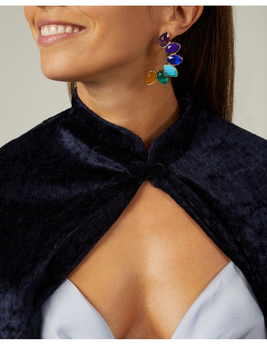 Cape courte en velours bleu marine avec fermeture au cou pour les invités, les demoiselles d'honneur et les occasions spéciales.