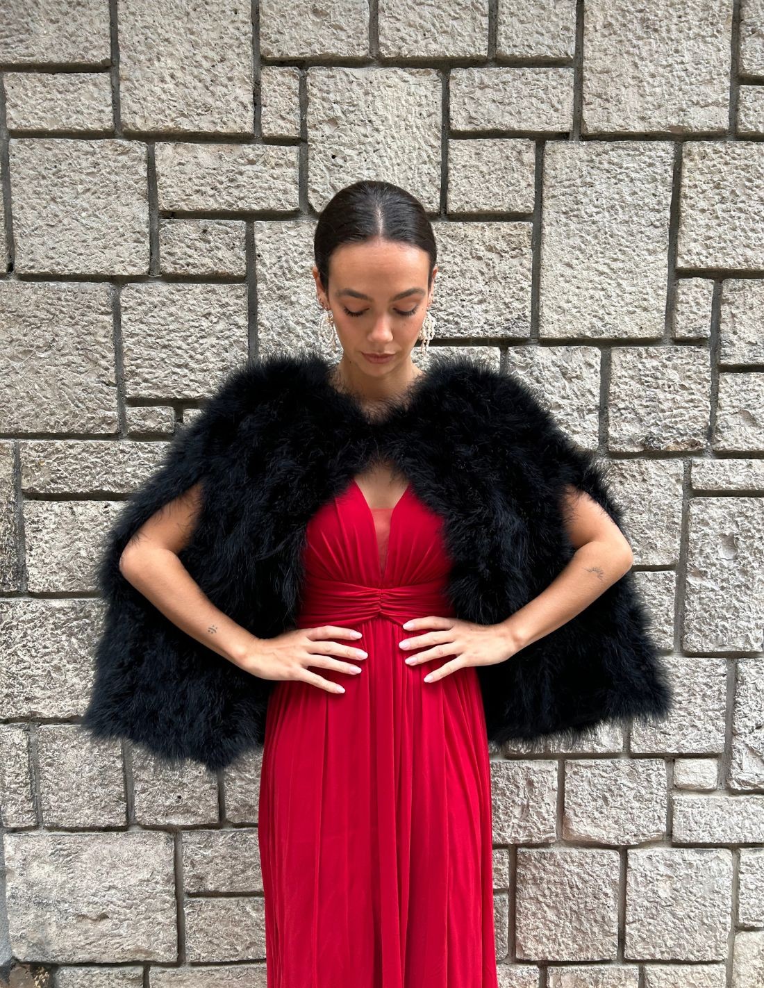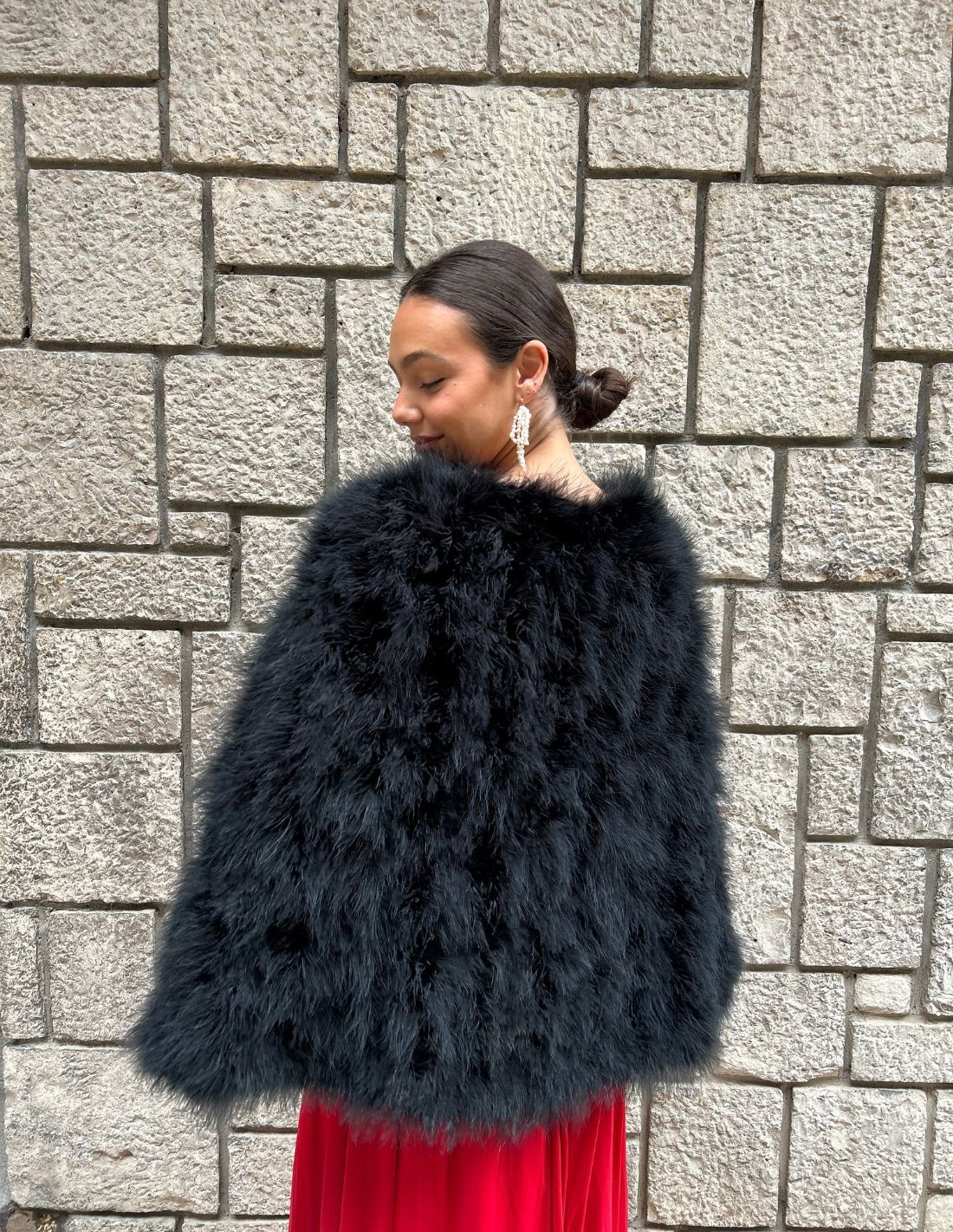 Découvrez l'élégance intemporelle de notre cape invitée en plumes d'autruche.