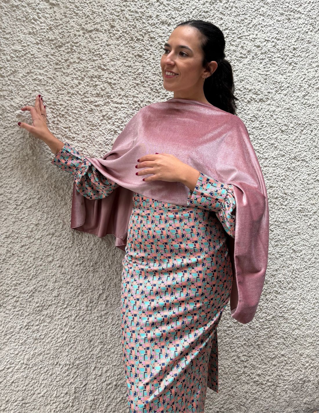 Si vous êtes à la recherche d'un modèle spécial pour rehausser votre look d'invité cette saison, les accessoires seront toujours votre choix idéal. Cette cape courte pour invités sera votre alliée pour les occasions élégantes et décontractées. De plus, sa couleur rose et son tissu velours vous permettront de l'associer à toutes sortes de vêtements, qu'il s'agisse de robes, d'ensembles, de tailleurs... Elle incorpore un col assez fermé pour un confort total et des fentes sur les côtés.