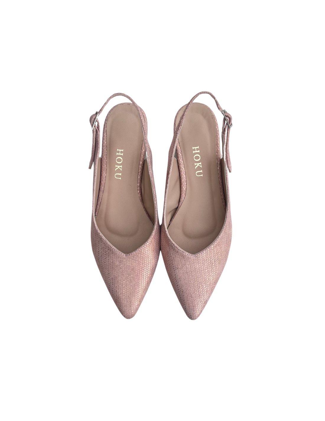 Cette chaussure événementielle est fabriquée à 100 % en cuir texturé rose pâle délicat, parfait pour toutes les saisons. Ce modèle invité présente un bout pointu, un peep toe et une fermeture à boucle métallique. Le talon est de 1 cm et l'intérieur est entièrement doublé.
