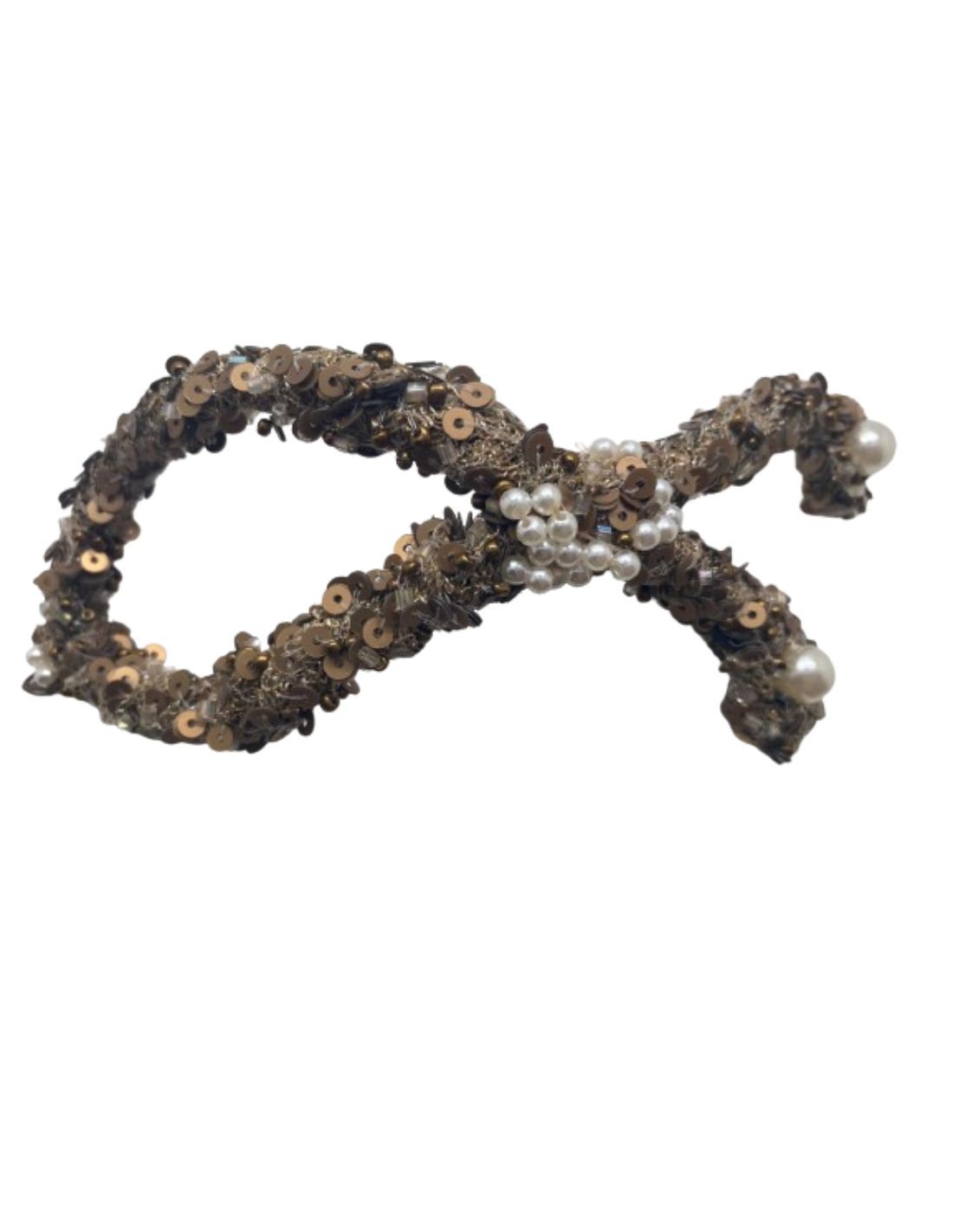 Coiffe fantaisie avec paillettes et perles vieil or