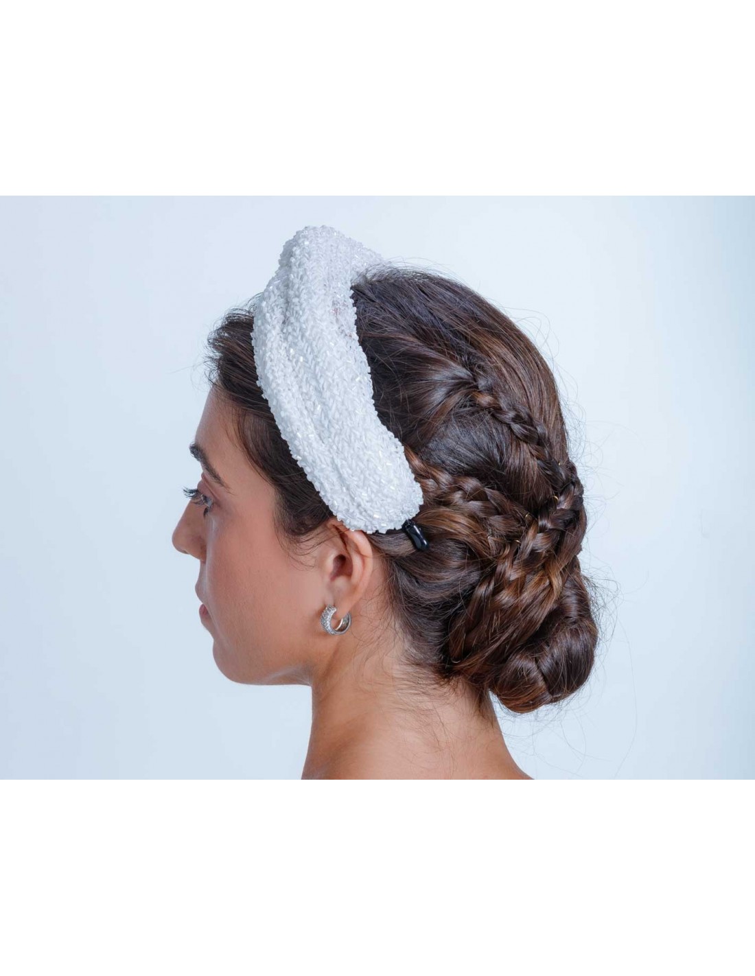 Coiffe de mariée blanche avec strass.