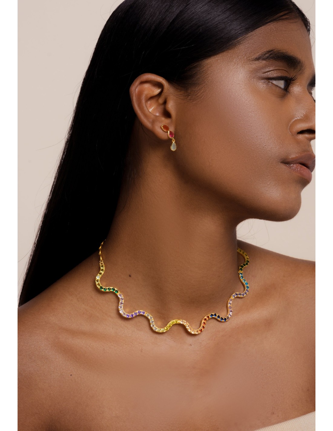 Tour de cou en plaqué or de couleur Shanti
