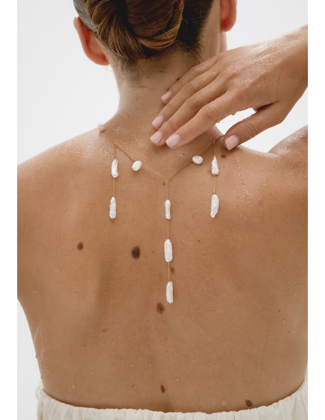 Si vous cherchez un accessoire simple et élégant pour compléter votre look et faire la différence, ce collier en or est un choix idéal. Un collier en or à la structure élégante avec de délicates perles d'eau douce suspendues aux pendentifs. Son design sophistiqué en fait l'accessoire idéal pour l'invitée qui cherche à se distinguer ou même pour la mariée qui souhaite un accessoire pour compléter sa robe.