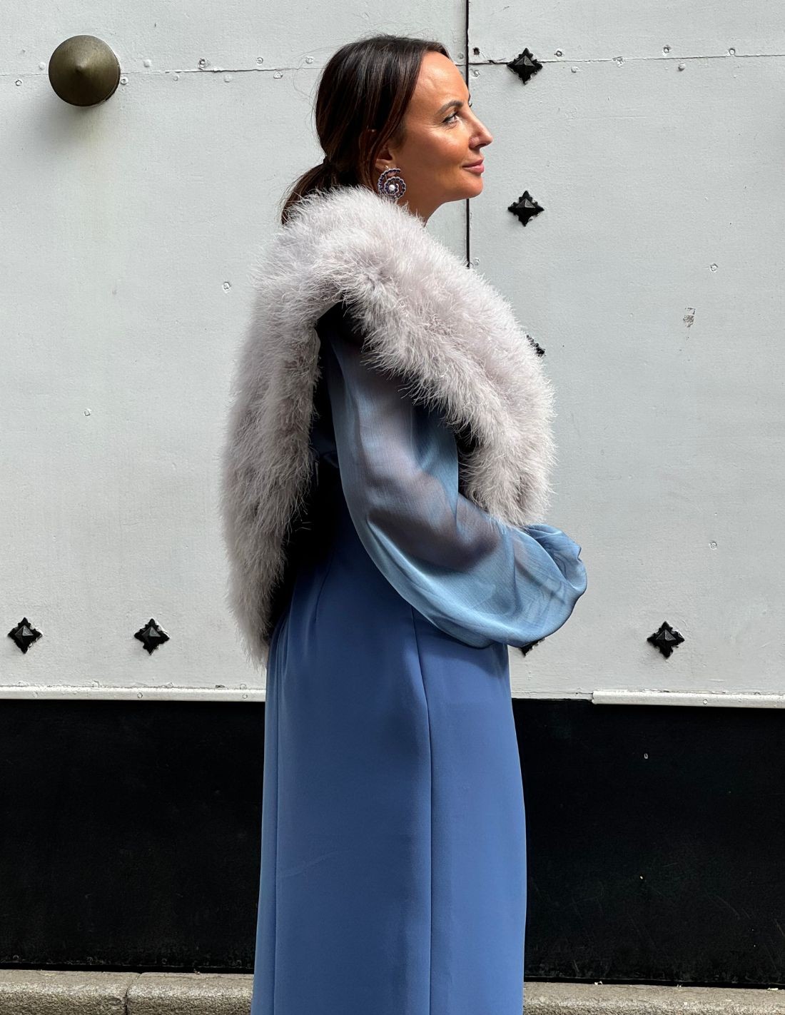 Une étole en plumes d'autruche, parfaite pour tout type d'occasion, que ce soit pour un événement tel qu'un mariage ou un baptême ou même pour donner une touche de style à un look décontracté ou minimaliste. Idéal pour vous tenir au chaud par temps froid ou même pour couvrir vos épaules à l'église. Fabriqué dans un coloris gris, facile à combiner avec des couleurs simples telles que le bleu ou le noir.