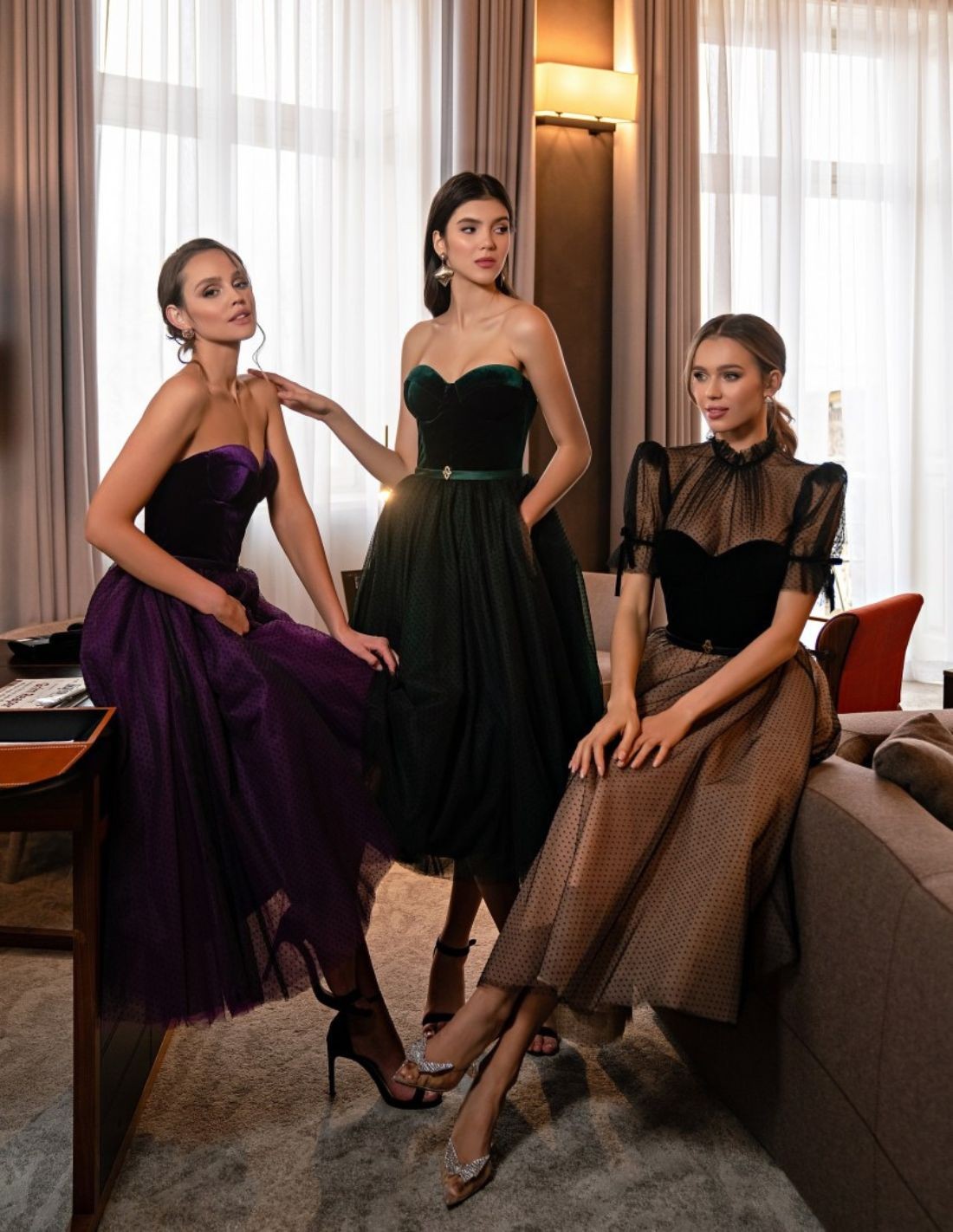 Robe de soirée midi avec corset en velours et jupe en tulle pour les invitées exigeantes.
